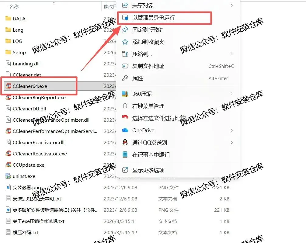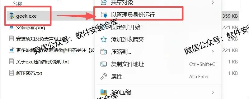 打开解压完成的文件夹,右键以管理员身份运行程序