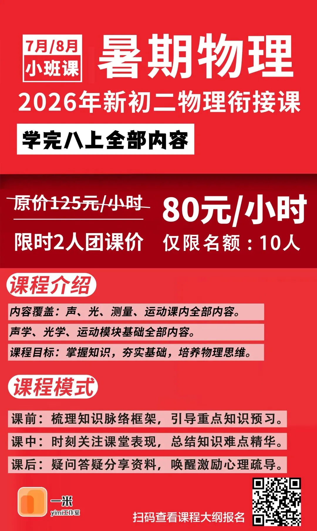 特惠:2026年暑假《新初二物理衔接课》