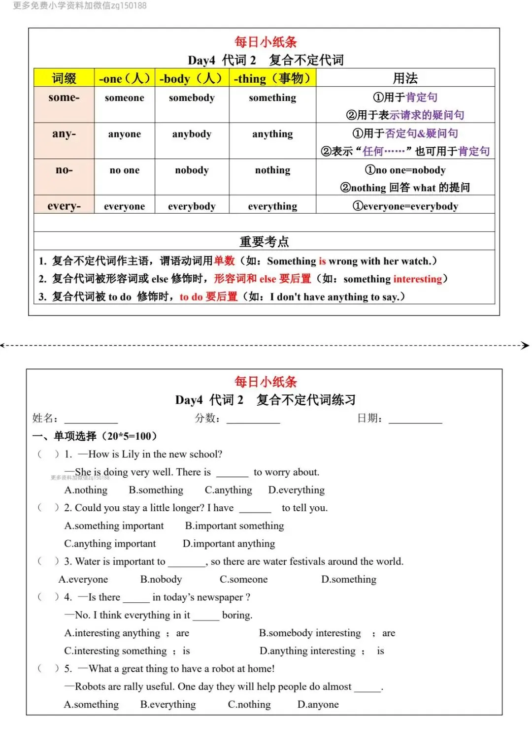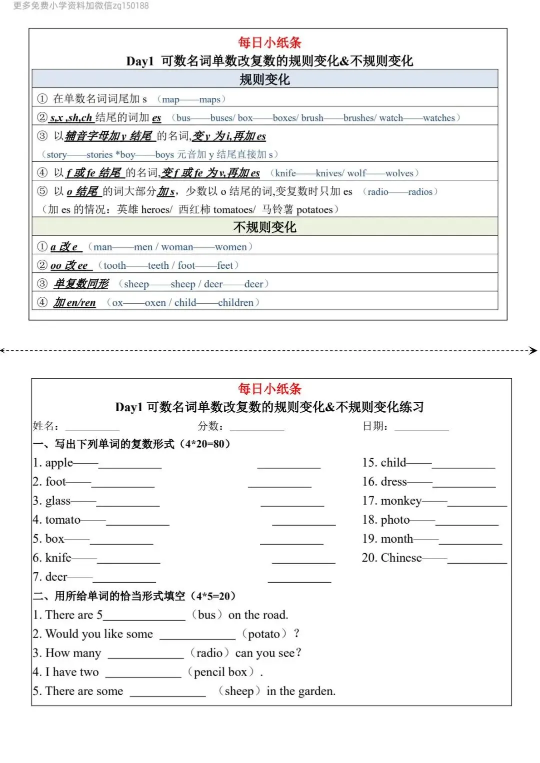 >小学英语 《语法每日小纸条》,可免费下载打印