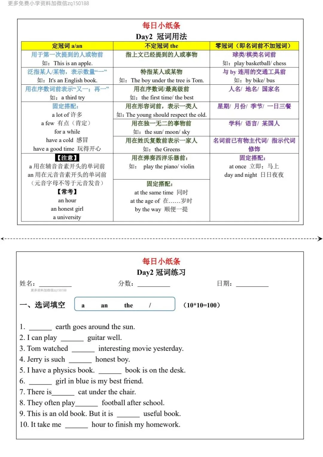 小学英语 《语法每日小纸条》,可免费下载打印