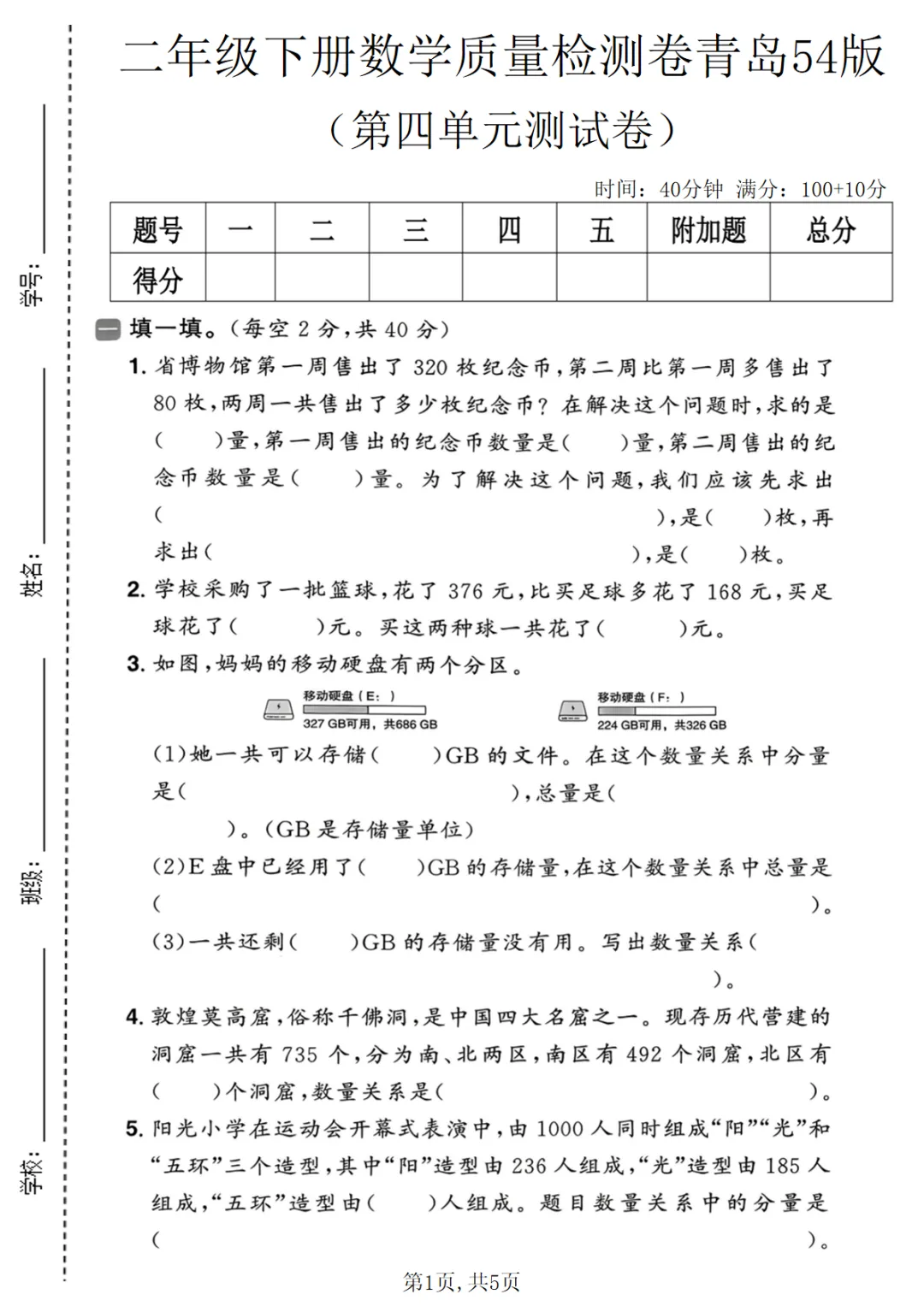 二年级(下)数学 第四单元质量检测卷