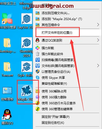 13、在电脑桌面找到Maple 2024软件,鼠标右键打开文件所在的位置进去安装目录位置