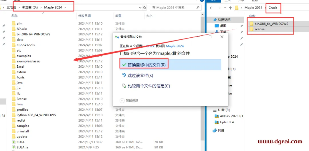 15、将安装包Crack里面的所有破解文件复制到刚才后退的安装目录位置下替换