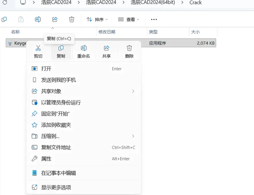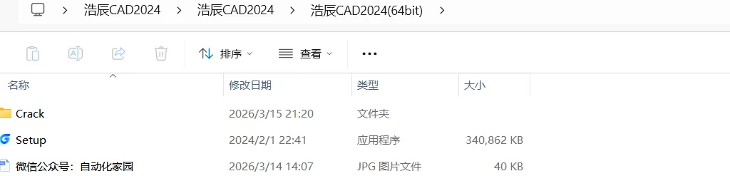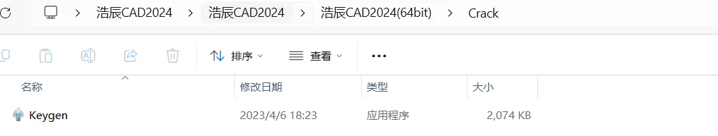 2.10,打开解压后的文件夹,双击打开【浩辰CAD2024】->【浩辰CAD2024】->【浩辰CAD2024(64bit)】->【Crack】文件夹。