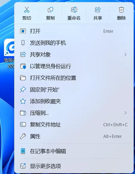 2.12,鼠标右击桌面【浩辰CAD 2024】->【打开文件所在的位置】。
