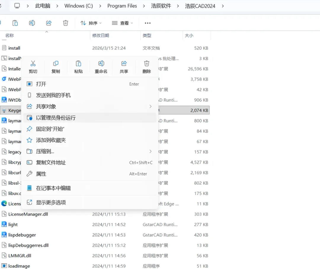 2.14,鼠标右击粘贴后的【KeyGen】,选择【以管理员身份运行】。