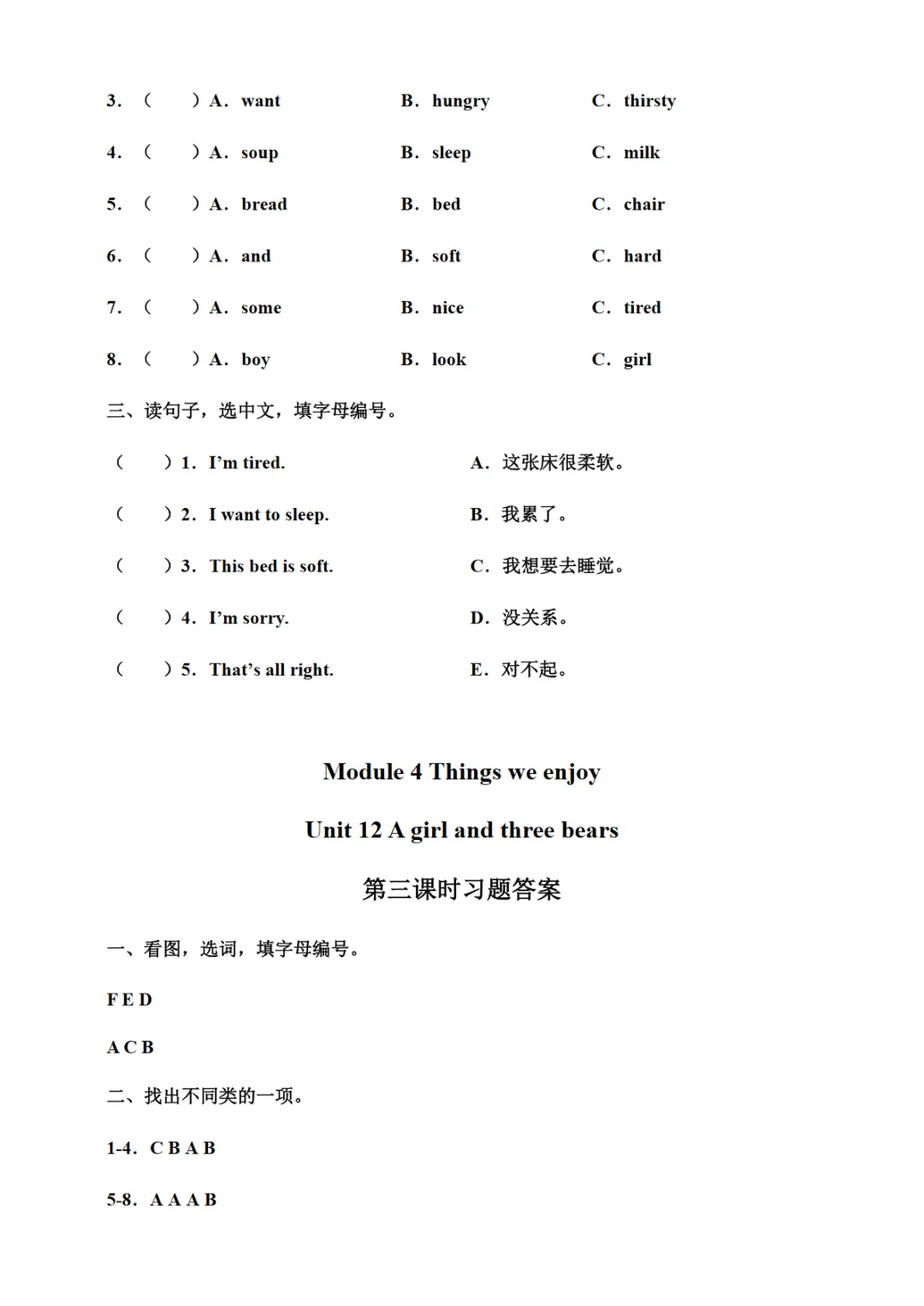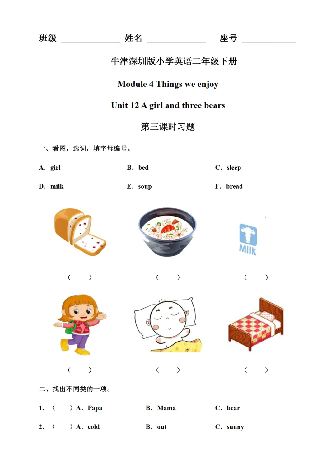 >【免费下载】Unit 12 A girl and three bears 第三课时习题【沪教牛津】二下英语,WORD电子版,可编辑,可打印