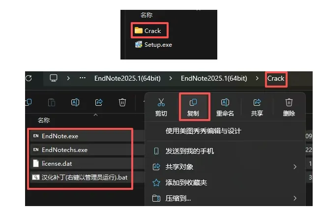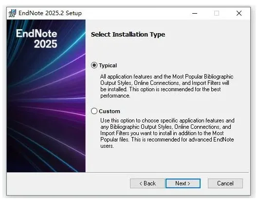 注意!!!解压前一定要关闭杀毒软件和电脑自带防火墙 (不然会误删激活工具)(电脑自带和第三方等杀毒软件、防火墙、实时保护等会拦截删除激活文件,安装完再打开!)1、下载安装包,解压后打开文件夹,找到【setup.exe】,右键【以管理员身份运行】5、勾选第一项【typical】,再点击【next】6、点击【browse】,更改安装路径(建议更改到D盘)直接把地址栏的C改为D盘即可(更改后的路径请记住,后面需要用到)10、返回到最开始解压的文件夹,点开【crack】,选中里面所以的文件右键【复制】11、去到【第6步更改后的安装路径】,粘贴到那里,并替换其中文件(如果没有提示说明步骤错误)12、点击刚粘贴过来的【汉化补丁】,右键【以管理员身份运行】,或者双击运行以上就是淳真给大家带来EndNote 2025安装教程,有安装EndNote 2025需求的小伙伴可以下载使用。