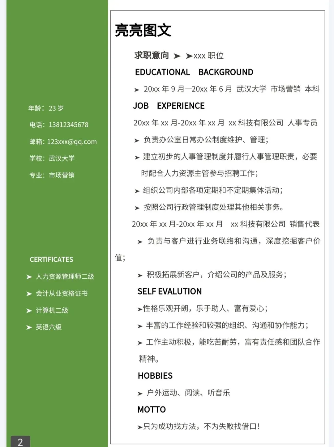 本文内容分享【 各类通用简历集通用求职模板 2 】