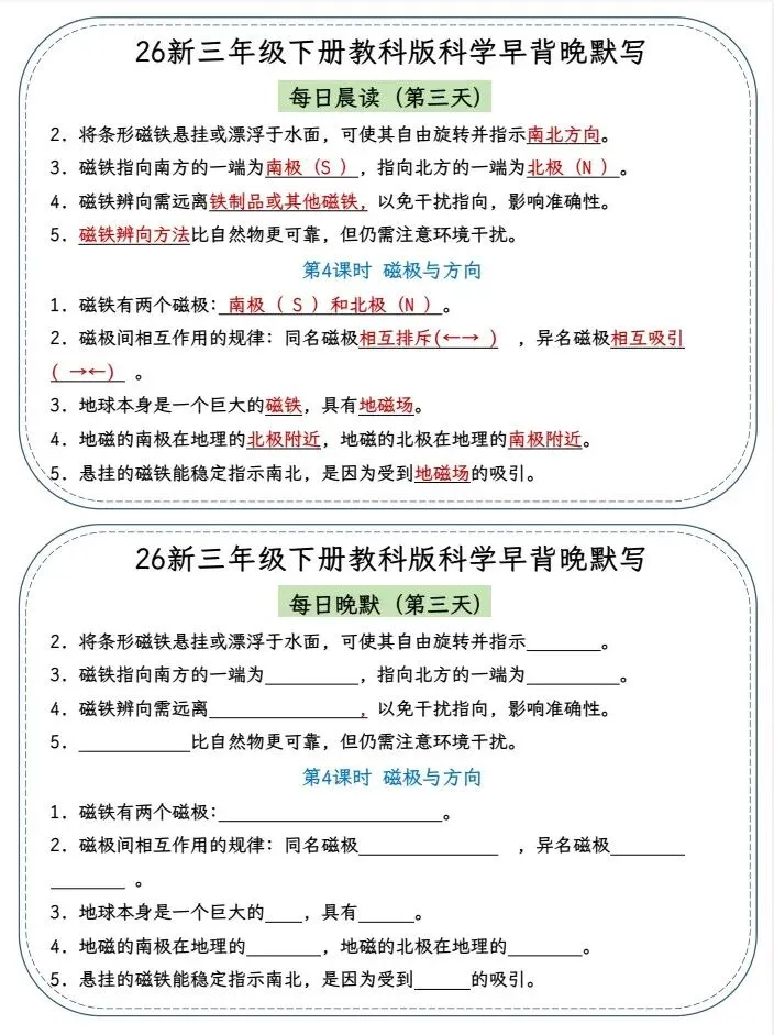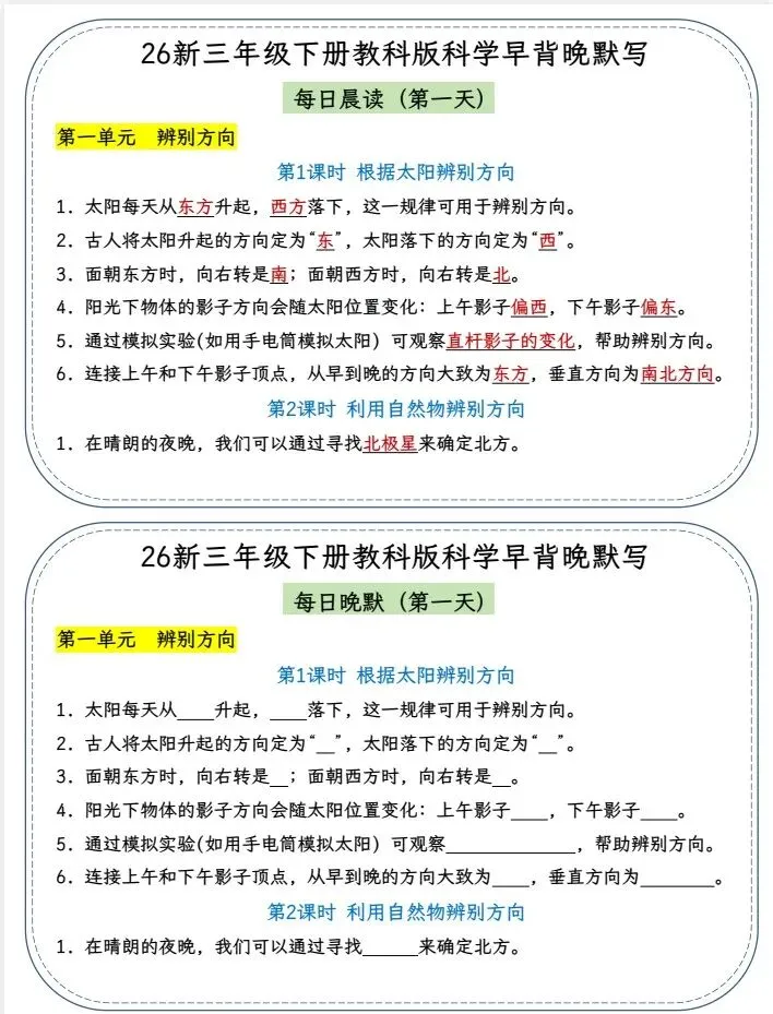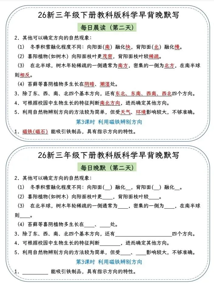 今天给大家整理了26春三年级科学下册《早读晚默 小纸条》教科版,转发给朋友或班级群,受益更多人,帮助孩子学习!