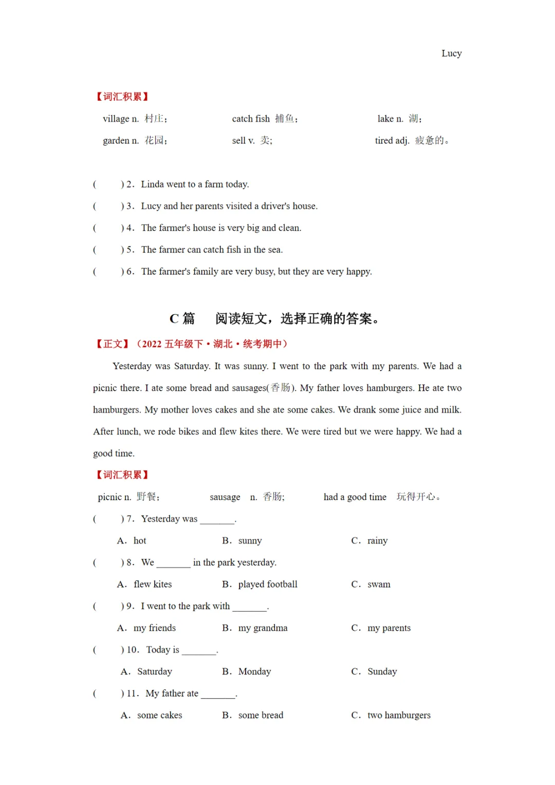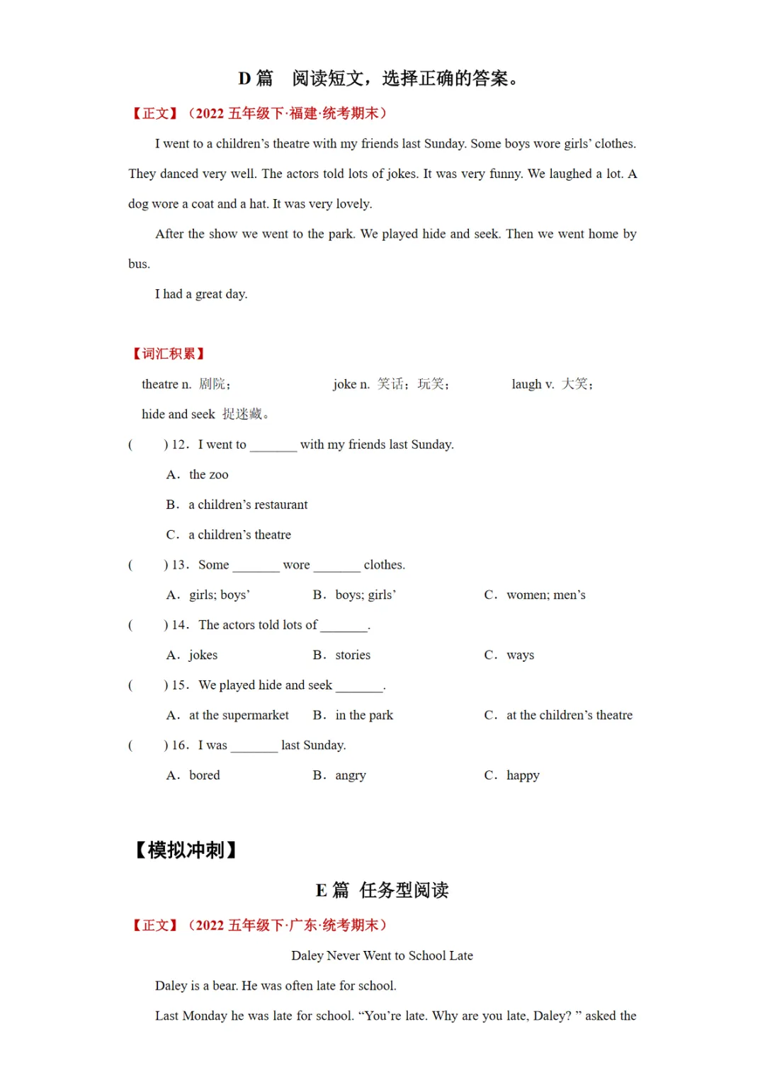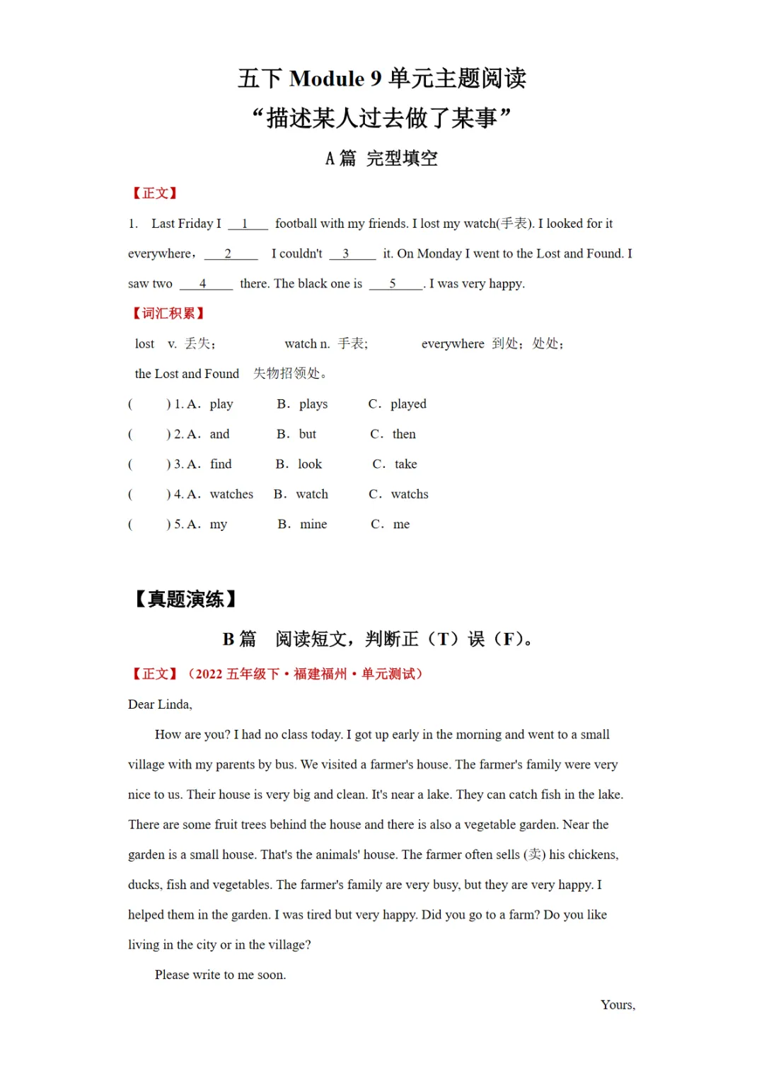 【免费下载】Module 9 单元主题阅读“描述某人过去做了某事”【外研三起】五下英语单元主题阅读,WORD电子版,可编辑,可打印