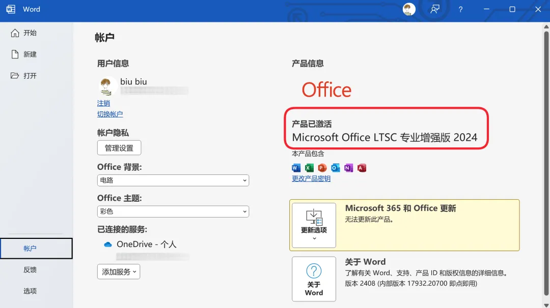 激活后,再次打开office任意组件就会发现已激活字样,所有功能全部都可以正常使用!