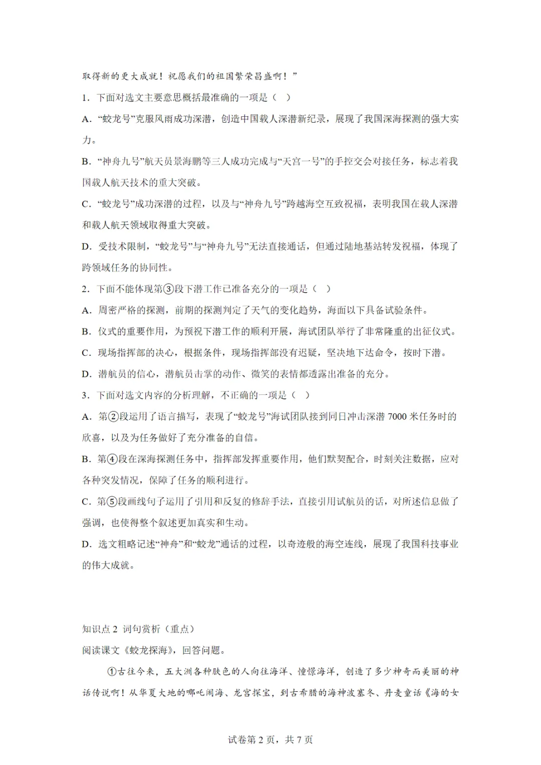语文第23课 “蛟龙”探海(第二课时) 课后作业(基础)