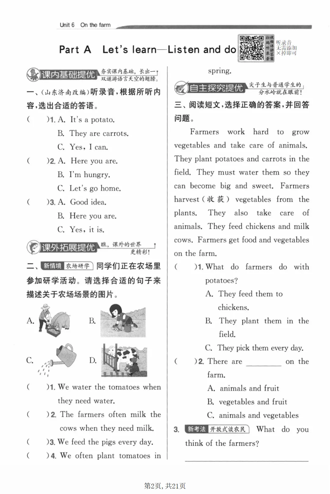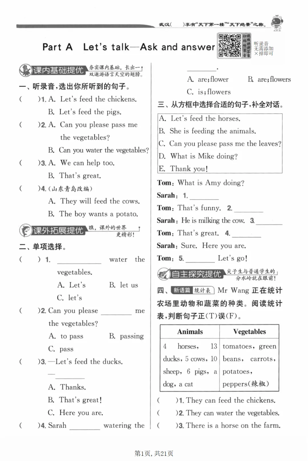 【免费下载】四年级(下)英语 第六单元综合练习《人教版》,PDF电子版,可打印,共21页,先保存,以免资源失效