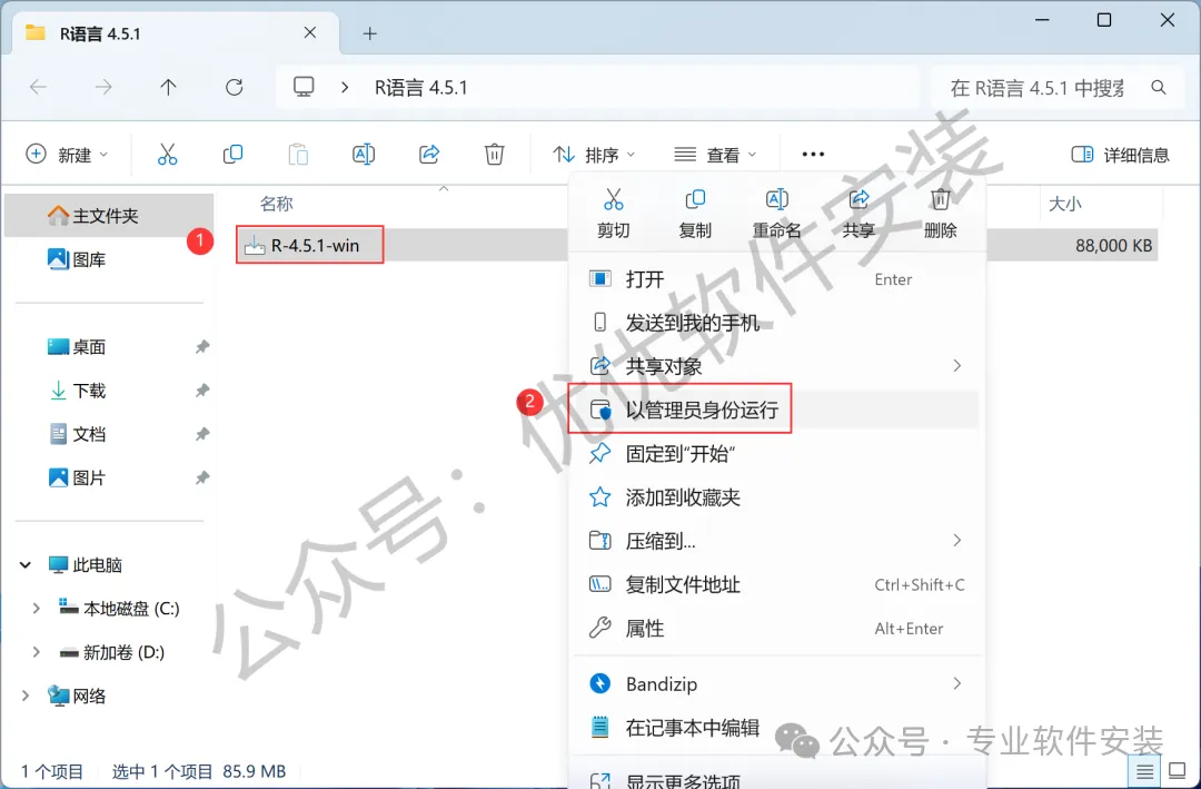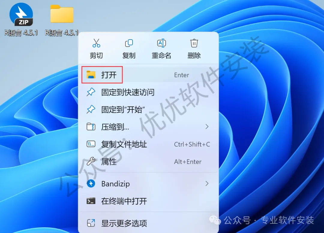 1、下载R语言 4.5.1软件安装包到电脑上,右键选择【解压到R语言 4.5.1\】