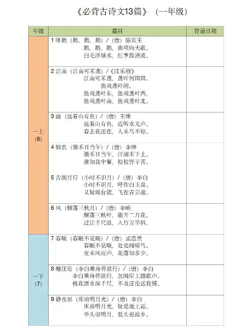 【资源名称】6年级必背古诗合集