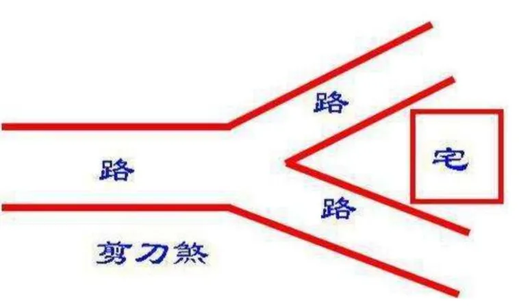 【描述】住宅位于三叉路口,其内角度低于90度者,称之为剪刀煞。