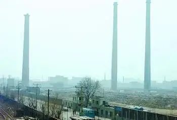 【描述】住宅接近工厂,而工厂有很多烟囱。