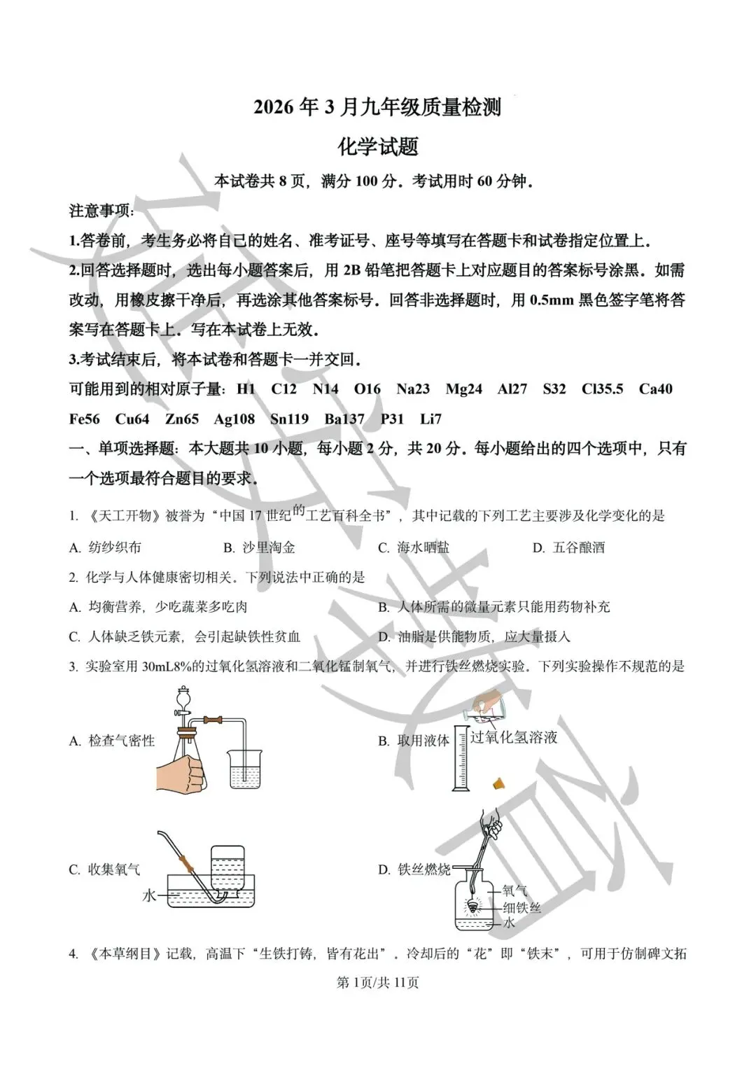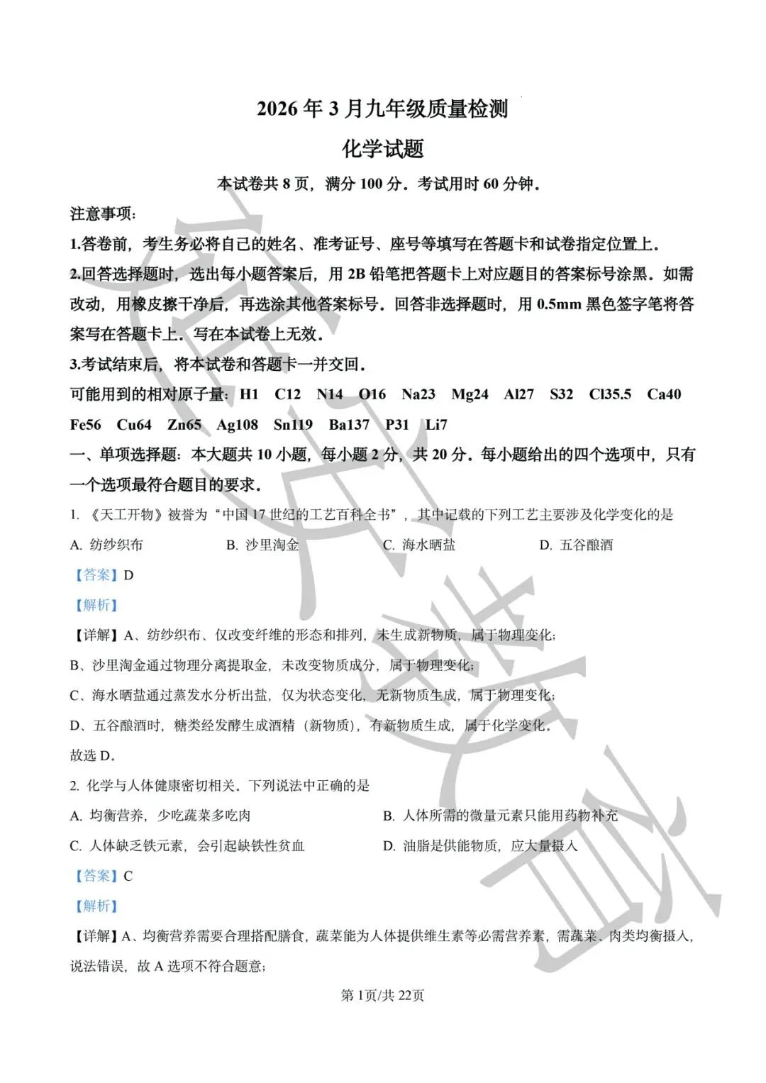 今天,延安教育为大家带来2026年3月历城区九年级质量检测化学试题的解析,帮助同学们从真题中把握规律,在错题中查漏补缺,为一模做好最充分的准备!