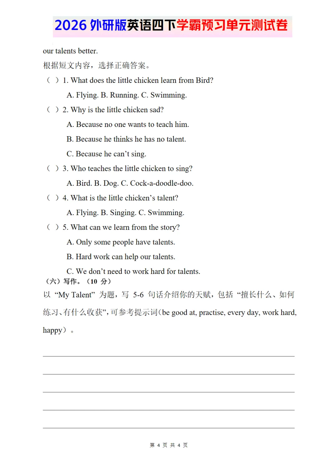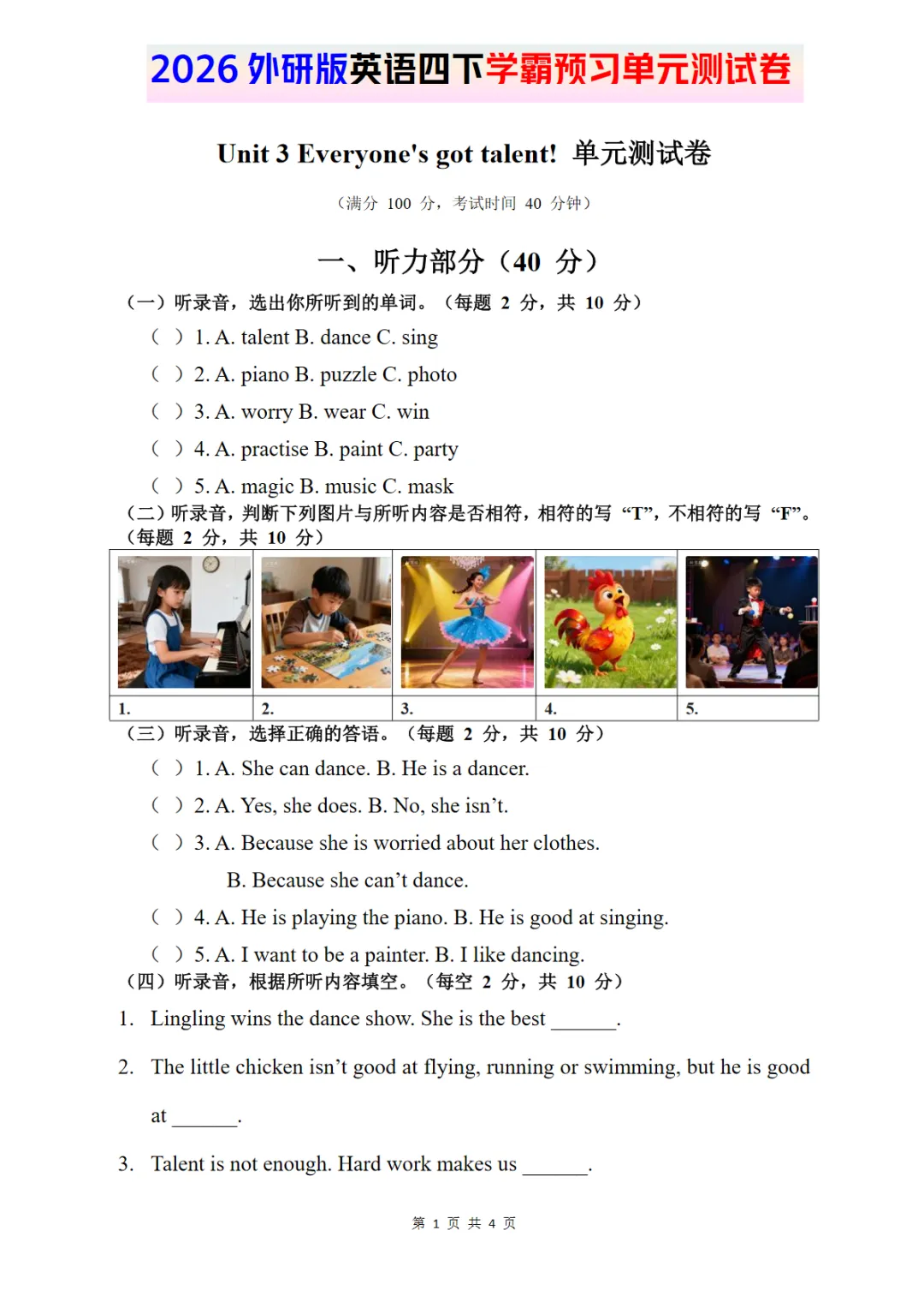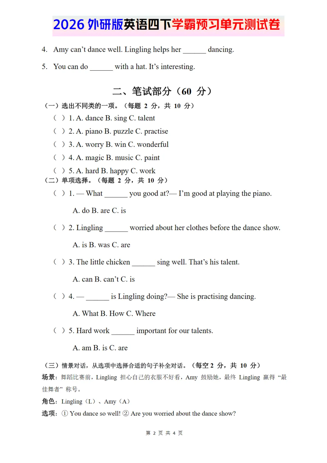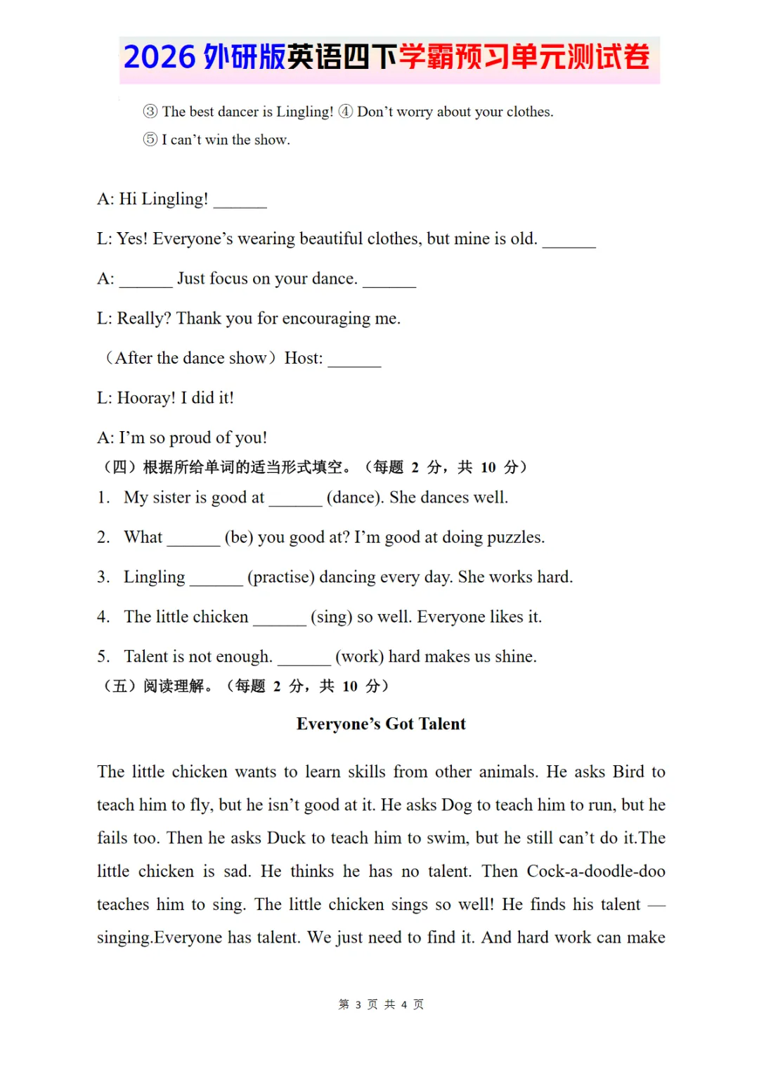 2026外研四下英语试卷 Unit 3
