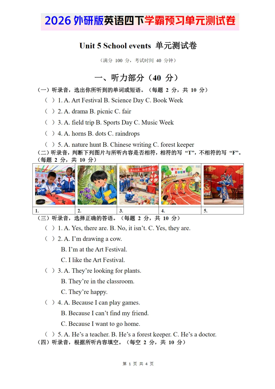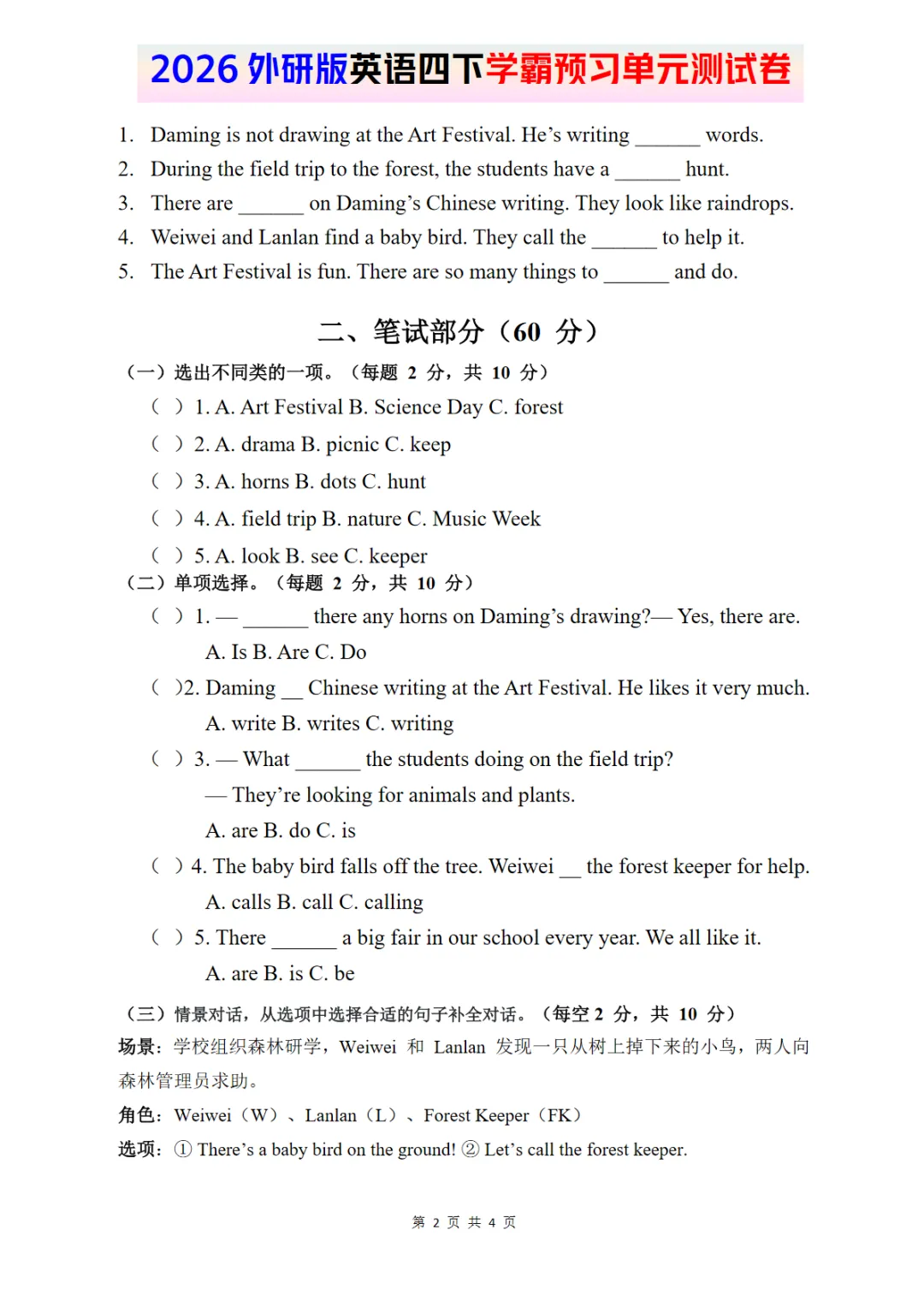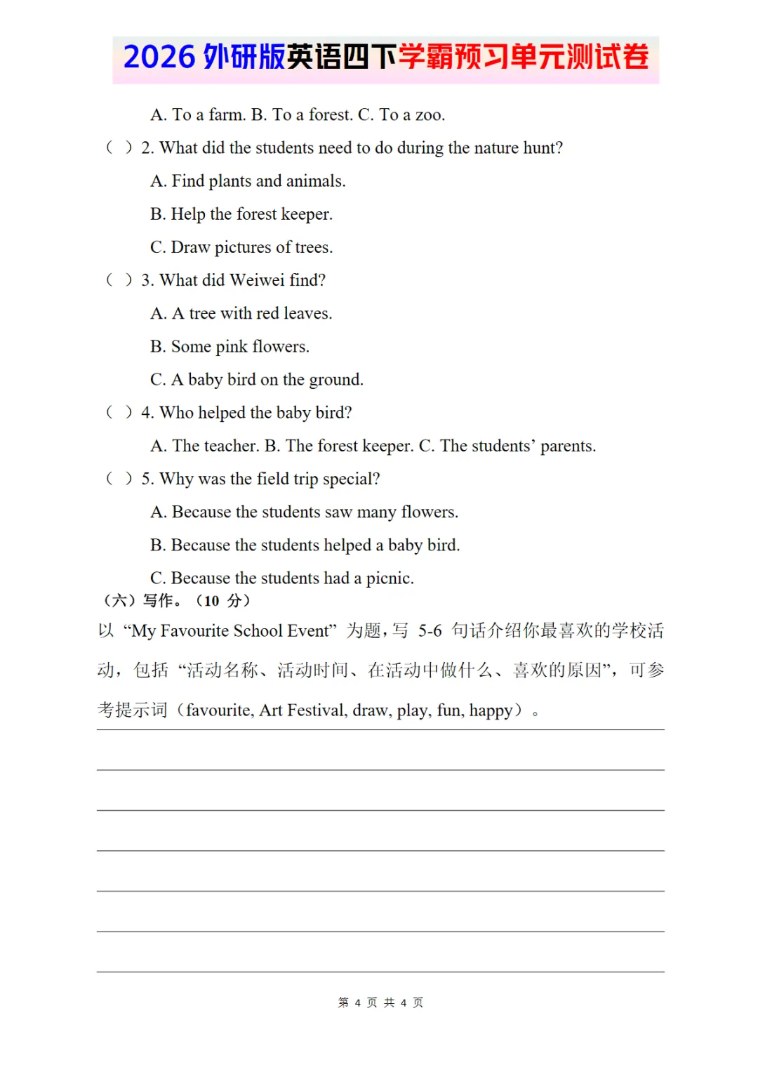 2026外研四下英语试卷 Unit 5