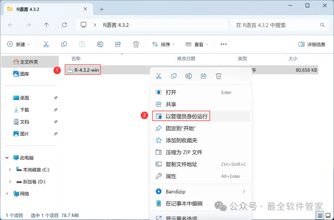 1、下载R语言 4.3.2软件安装包到电脑上,右键选择【解压到R语言 4.3.2\】