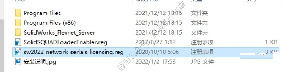 2、打开解压后的crack文件,双击运行sw2022_network_serials_licensing.reg注册表文件,然后点击是和确定。