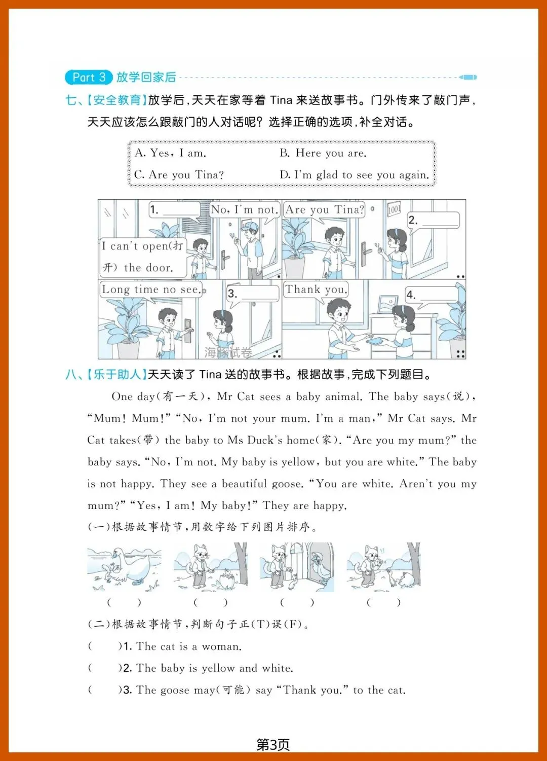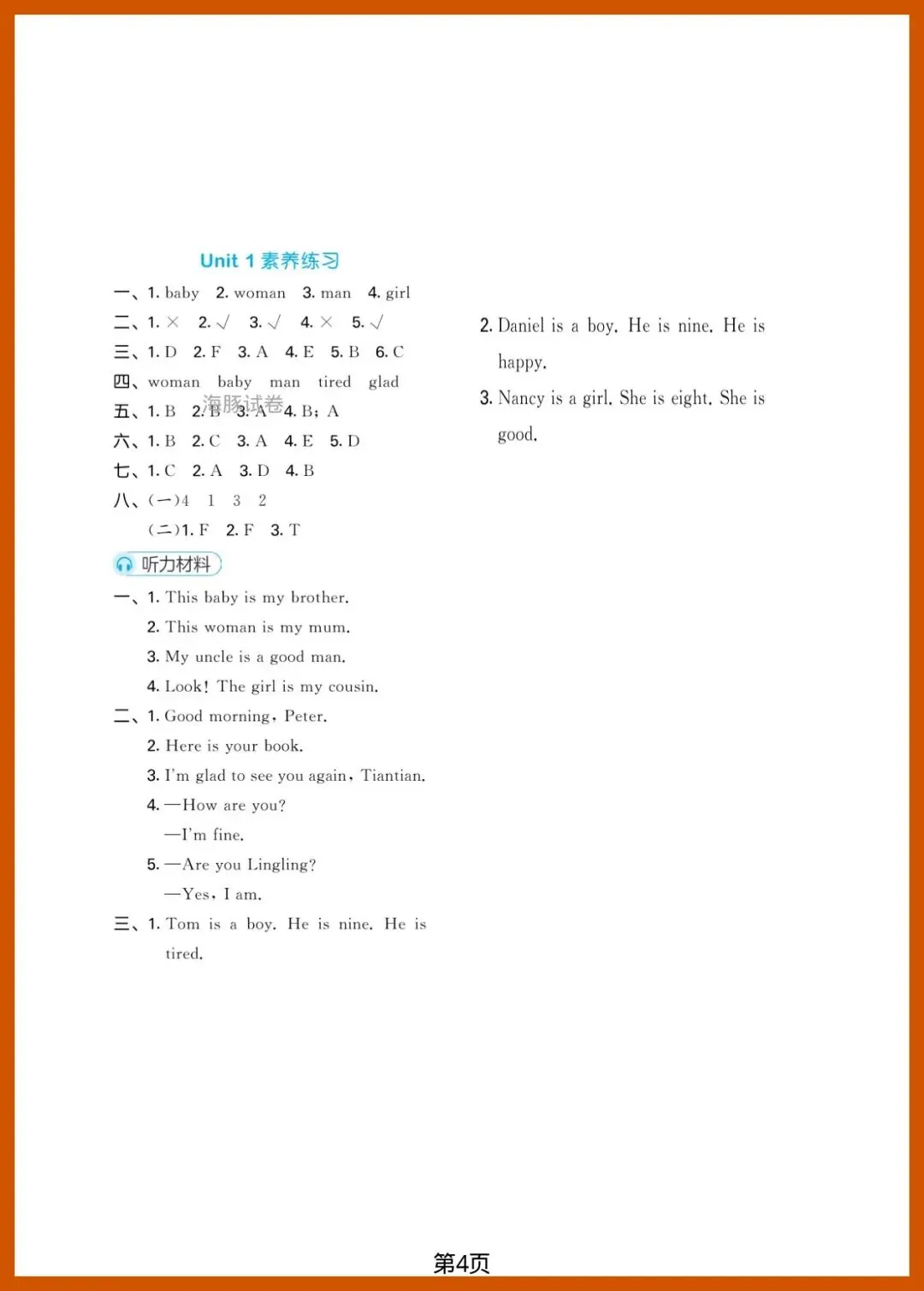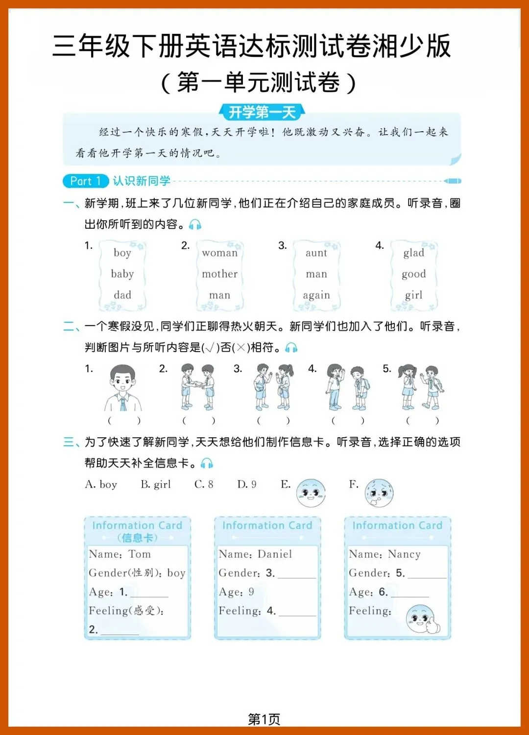 三年级(下)英语_第一单元达标测试卷《湘少版》,共4页,电子版可打印可下载。这份资料内容丰富,结构清晰,包含了核心知识点和练习题,帮助孩子巩固学习成果,及时发现不足之处,查缺补漏。有需要的家长抓紧打印出来给孩子练一练吧!