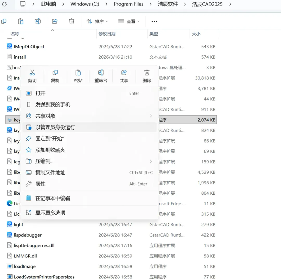 2.15,鼠标右击粘贴后的【KeyGen】,选择【以管理员身份运行】。