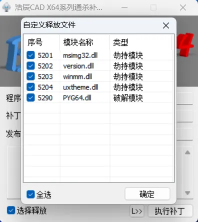 2.16,选中【选择释放】->【全选】,点击【确定】。