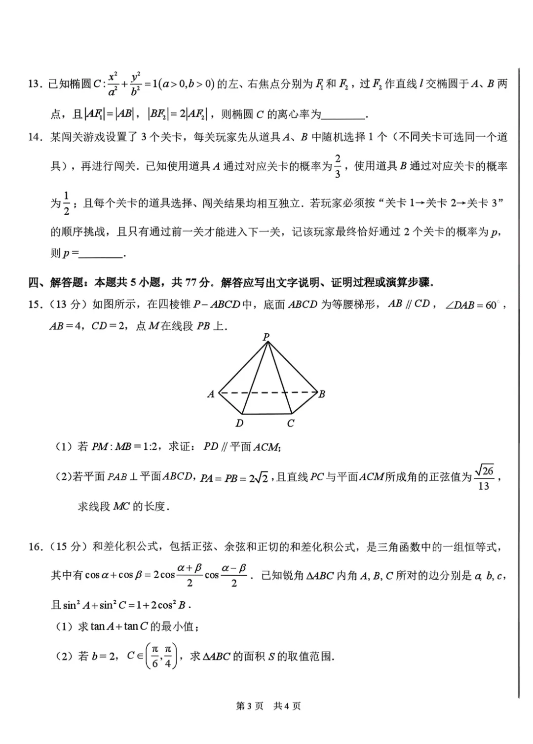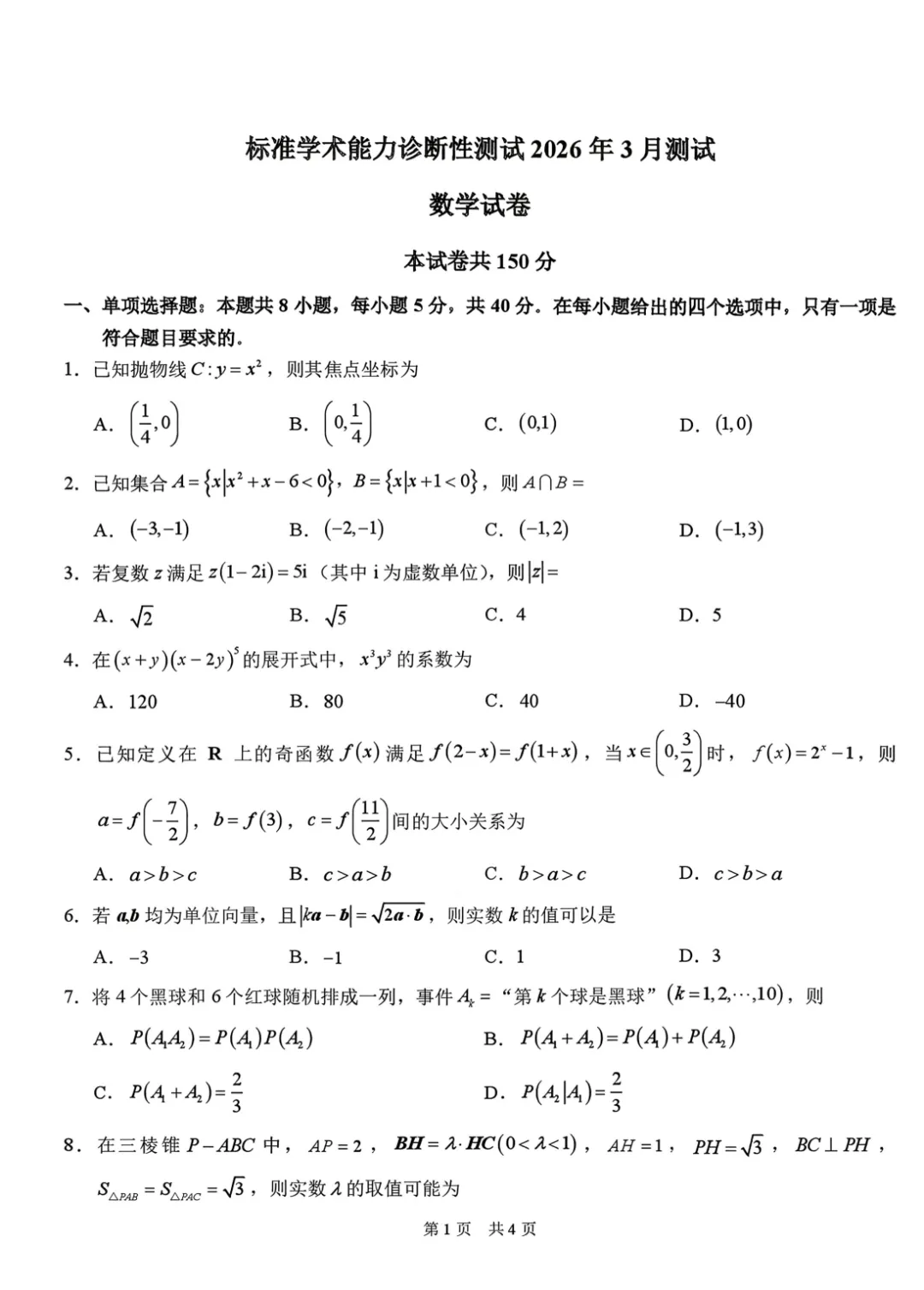 2026 届THUSSAT标准学术能力诊断性测试3月数学试卷及答案