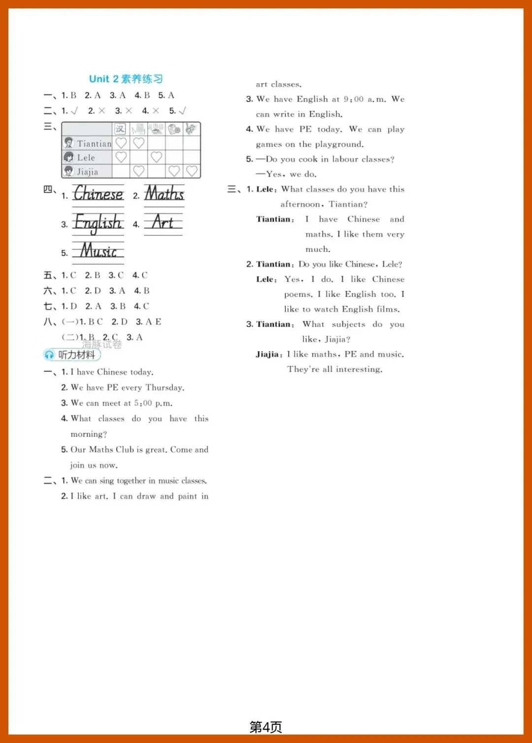 【免费下载】四年级(下)英语_第二单元达标测试卷《湘少版》 | PDF完整高清电子版可打印
