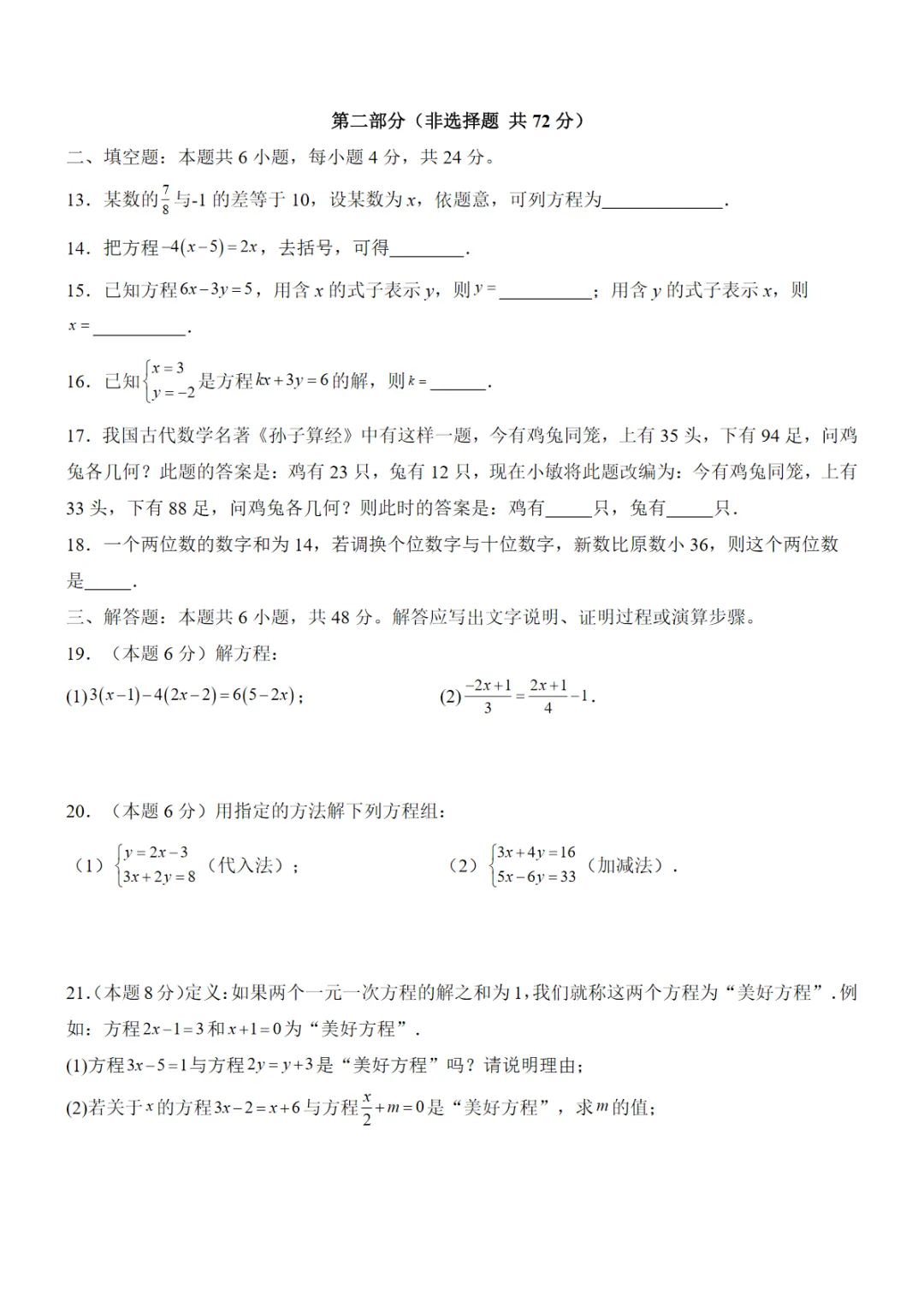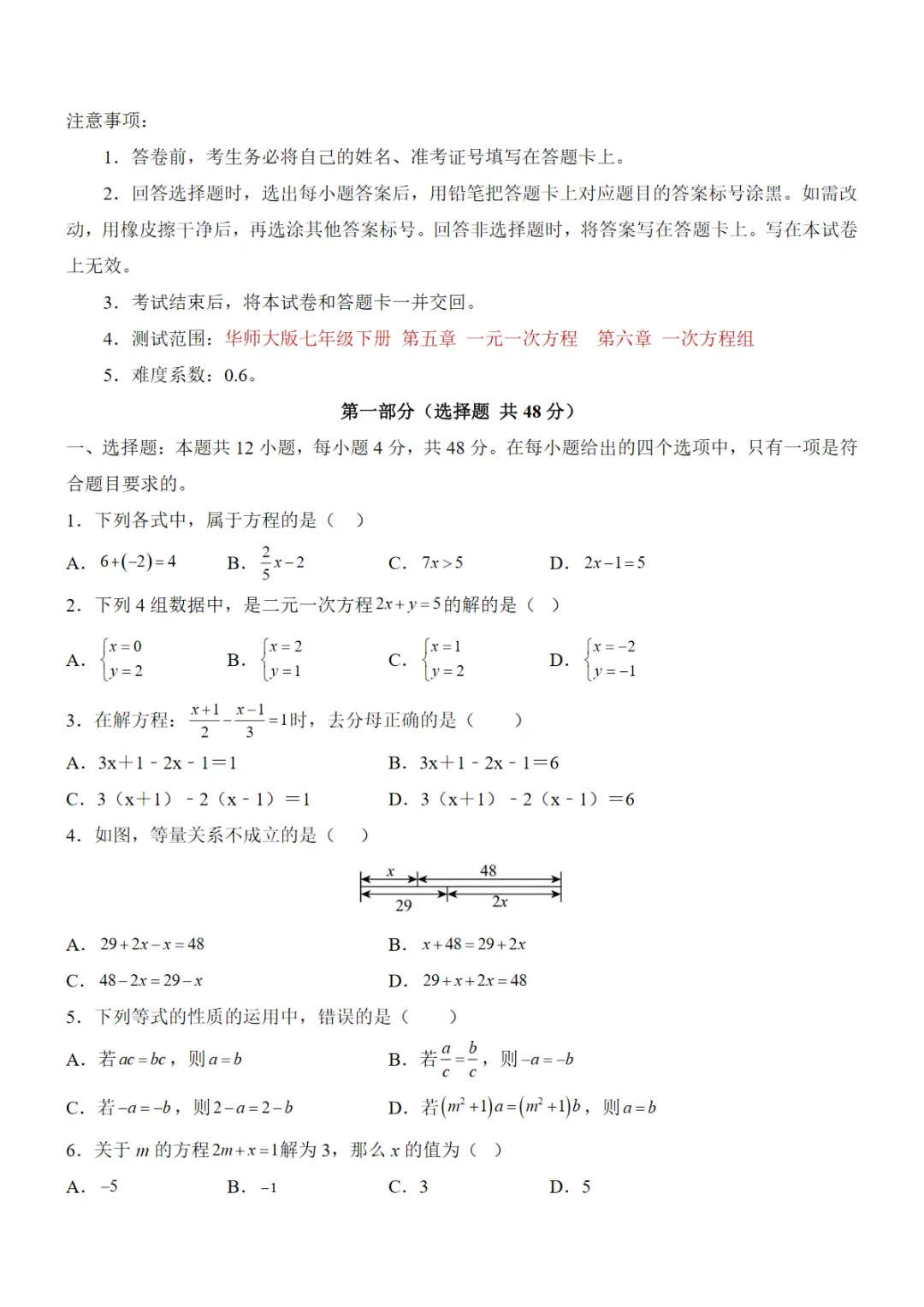 【华师】7下数学第1次月考【第5-6章】