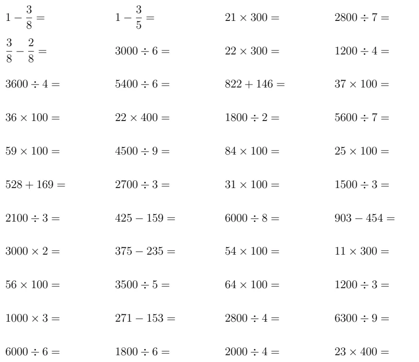 本文分享:小学数学三年级口算10000题(免费下载可打印)