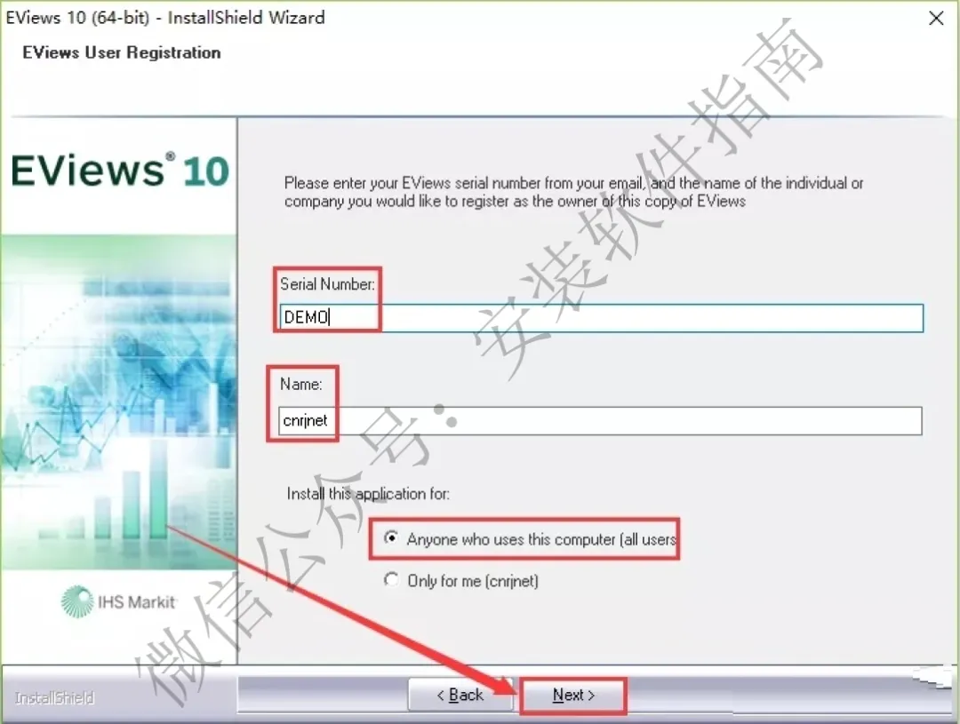 10.Serial Number输入:DEMO,Name输入:cnrjnet,最后点击【Next】