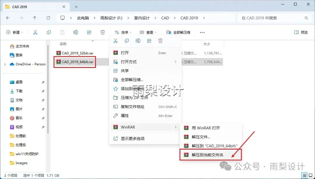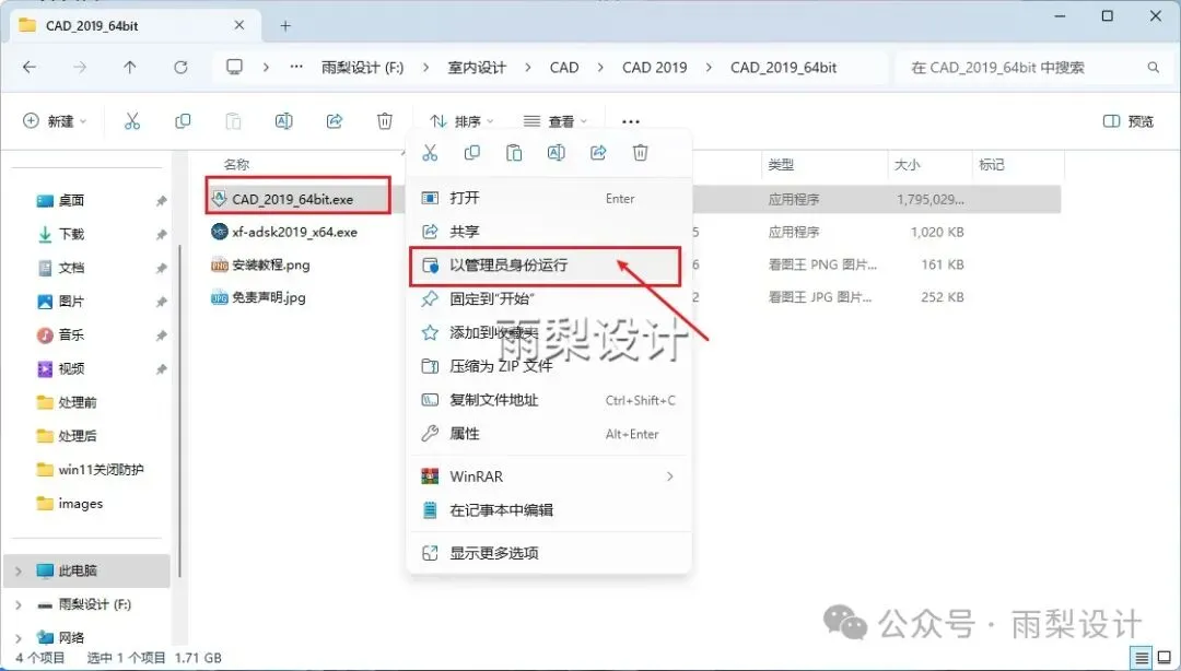 2.右键【CAD_2019_64bit.exe】选择【以管理员身份运行】