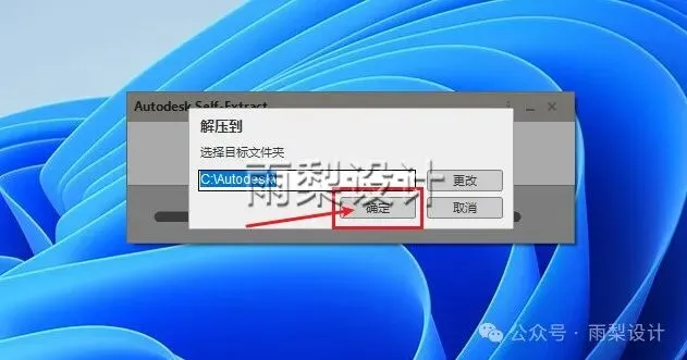 3.选择解压目录,如需更改点【更改】,不需要点【确定】(安装完可删除)