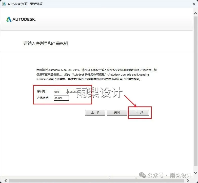 16.输入序列号【666-69696969】 密钥【001K1】;点击【下一步】