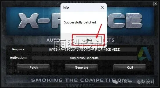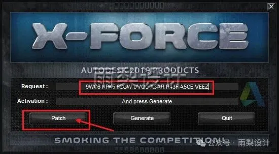 20.把第18步复制的申请码粘贴到【Request】;点击【Patch】