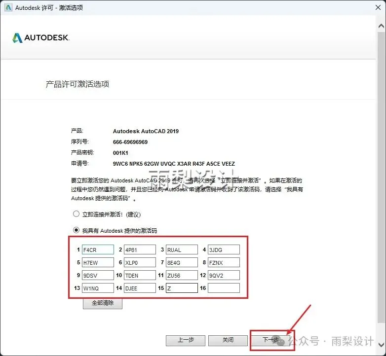 18.复制【申请号】;并且选择【我具有Autodesk提供的激活码】