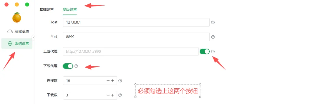 接着点击高级设置,把图片对应的两个代理按钮都选上。