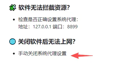 最后一定要提一嘴,按软件作者的说法,有些朋友用完关掉软件后,如果发现电脑突然连不上网了,直接去系统网络设置里把手动代理关掉就行。