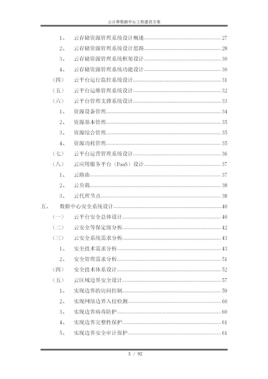 一、项目背景3 二、工程概述3 三、数据中心网络设计5 (一)网络结构5 1、链路接入区6 2、互联网接入区6 3、互联网服务资源区7 4、专网接入区7 5、专网服务资源区8 6、核心网络区8 7、内网服务资源区9 8、存储资源区9 9、运维管理区10 10、指挥中心接入区10 11、物理整合区11 (二)虚拟化组网11 四、云计算平台系统设计13 (一)资源池设计14 1、计算资源池架构设计14 2、存储资源池设计14 3、资源池部署设计15 4、设备选型17 (二)云计算资源管理系统19 1、云计算资源管理系统设计概述19 2、云计算资源管理系统设计思路20 3、云计算资源管理系统框架设计21 4、云计算资源管理系统功能设计25 (三)云存储资源管理系统设计27 1、云存储资源管理系统设计概述27 2、云存储资源管理系统设计思路28 3、云存储资源管理系统框架设计30 4、云存储资源管理系统功能设计30 (四)云平台运行监控系统设计31 (五)云平台运维管理系统设计32 (六)云平台管理支撑系统设计33 1、资源设备管理34 2、资源基本管理35 3、资源综合管理35 4、资源功耗管理35 (七)云平台运营管理系统设计36 (八)云应用服务平台(PaaS)设计37 1、云路由37 2、云负载38 3、云代理节点38 五、数据中心安全系统设计40 (一)云平台安全总体设计40 (二)云安全等保定级分析42 (三)云安全系统需求分析43 1、安全技术需求分析43 2、安全管理需求分析51 (四)安全技术体系设计52 (五)云区域边界安全设计57 1、实现边界的访问控制59 2、实现网络边界入侵检测60 3、实现边界病毒防护60 4、实现边界完整性保护61 5、实现边界安全审计保护61 6、实现网站安全防护61 (六)云计算环境安全设计62 1、虚拟机访问控制62 2、主机安全管理63 3、日志集中审计63 4、脆弱性管理64 (七)云安全管理中心设计64 1、集中安全管控64 2、安全策略集中管理65 3、云安全集中管理66 (八)安全管理体系设计66 1、安全管理组织66 2、人员安全管理67 3、安全管理策略67 (九)安全运维体系设计68 六、数据中心机房工程68 (一)机房布局与布线68 (二)机房装饰装修69 1、地面工程70 2、天花吊顶工程72 3、墙面工程73 4、门窗工程设计74 (三)机房电气系统74 1、配电系统74 2、电源插座设计75 3、照明系统设计75 4、接地系统设计76 5、防雷系统78 6、不间断电源系统78 (四)机房空调系统80 1、机房环境设计标准80 2、机房环精密空调容量设计80 3、空调送风方式的设计81 4、空调上下水设计81 (五)动力环境监控系统系统81 (六)KVM系统84 1、方案说明84 2、方案拓扑图及说明84 3、方案特点85 (七)机房消防报警和气体灭火系统86 |