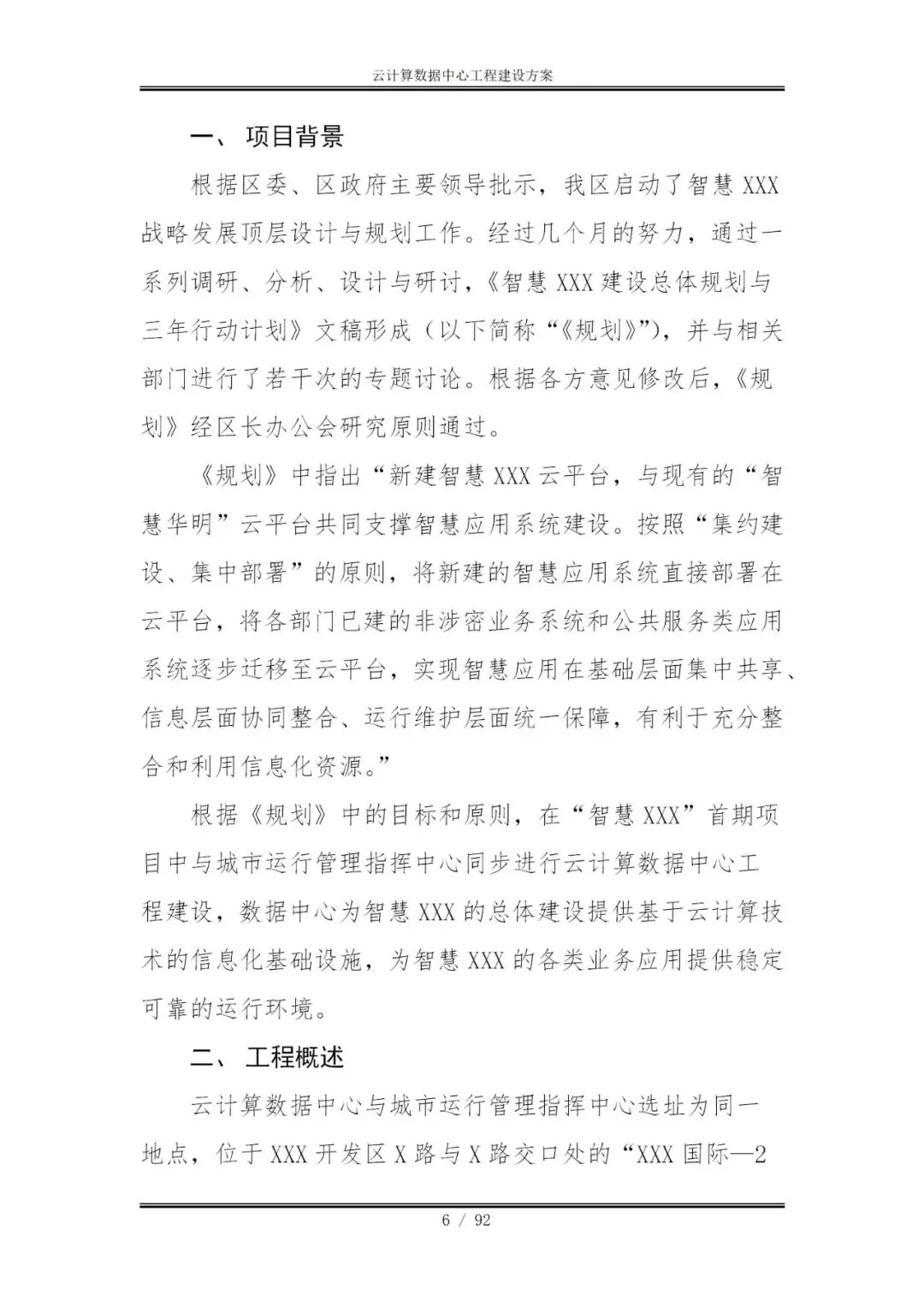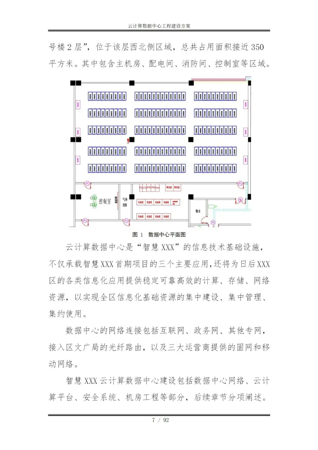 智慧XXX云计算数据中心建设包括数据中心网络、云计算平台、安全系统、机房工程等部分,后续章节分项阐述。