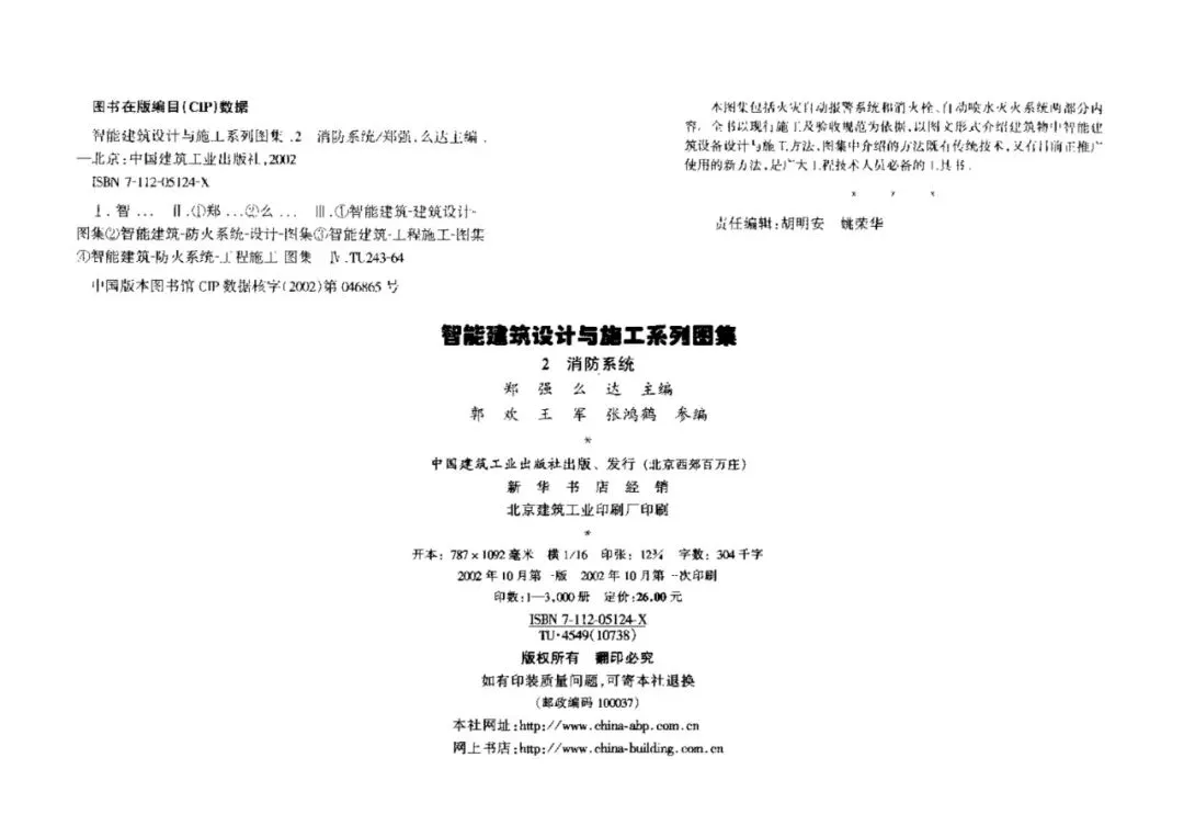 本书由郄强、么达主编,参加编写的还有郭欢、王军、张鸿鹤本图集主要供建筑设计人员及消防工程施工人员阅读使用,也可供防火监督人员及消防、建筑院校相关专业人员学习参考:智能建筑设计与施工系列图集(206页)