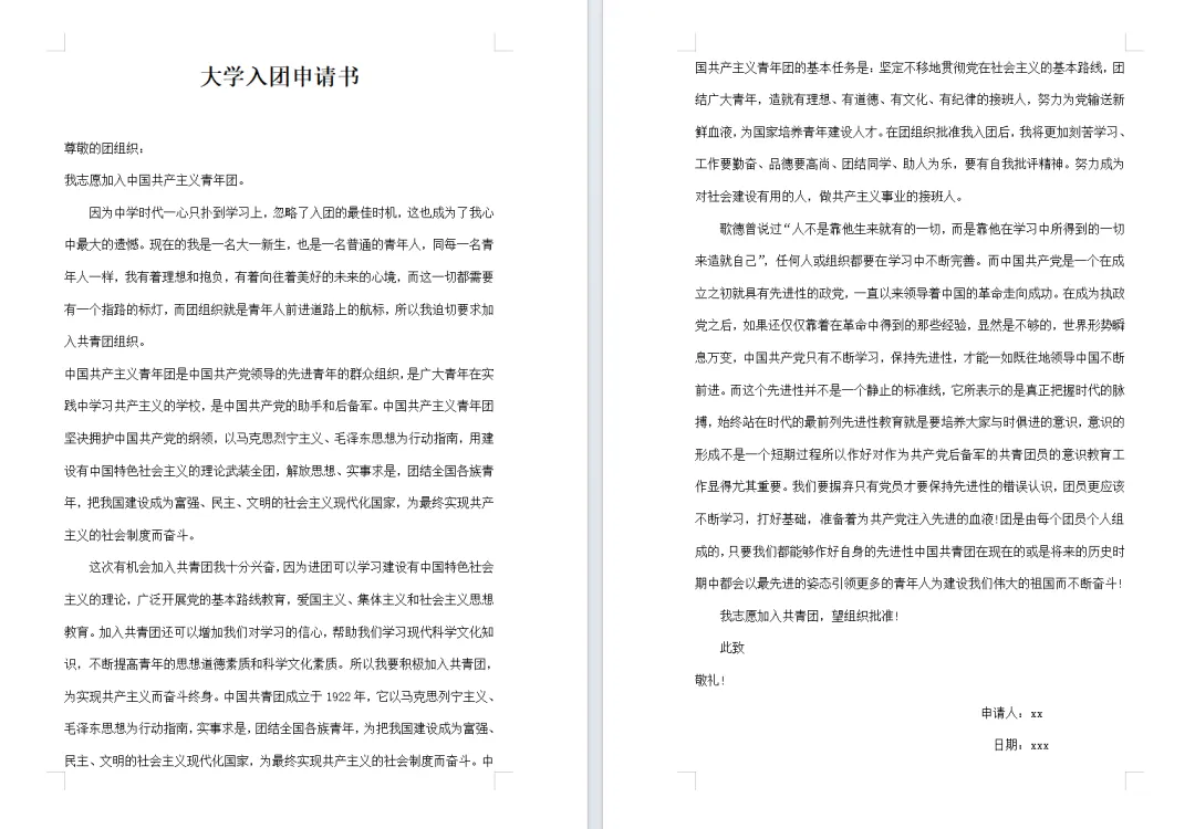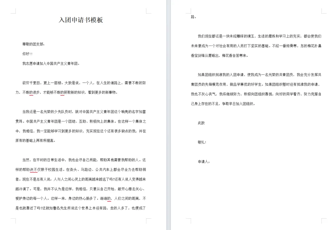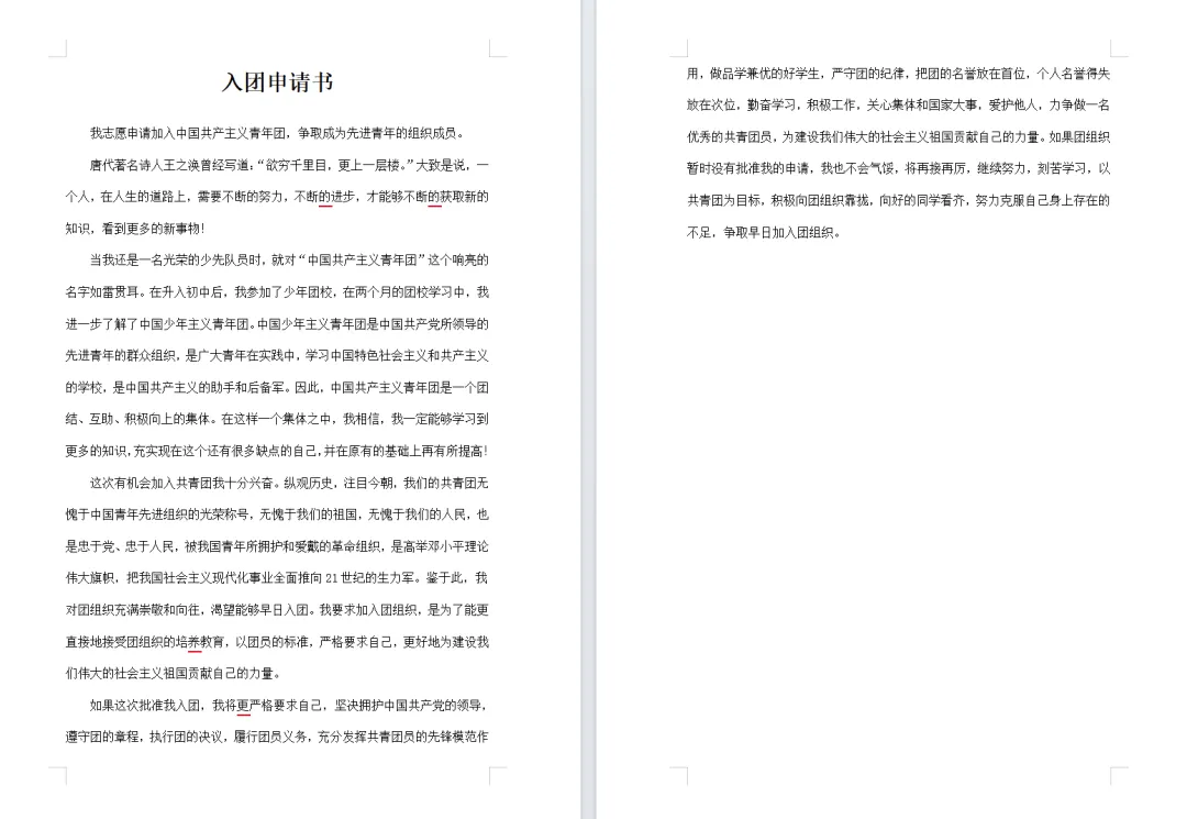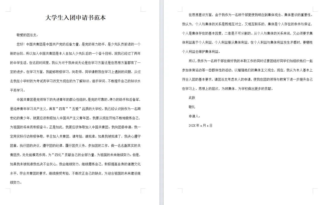 【免费下载】10套大学生入团申请书范文Word模板,26年最新!