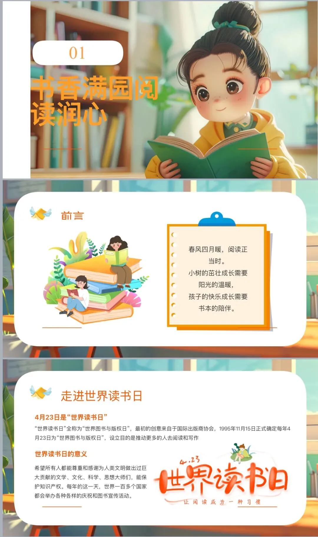 世界读书日ppt和发言稿(免费下载)《书香润童心,阅读伴成长》