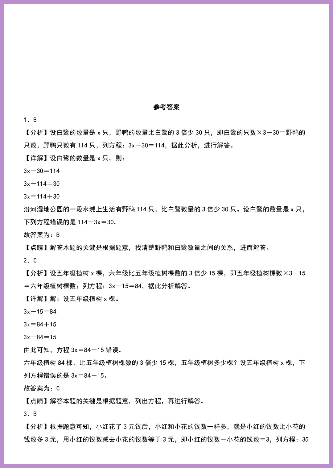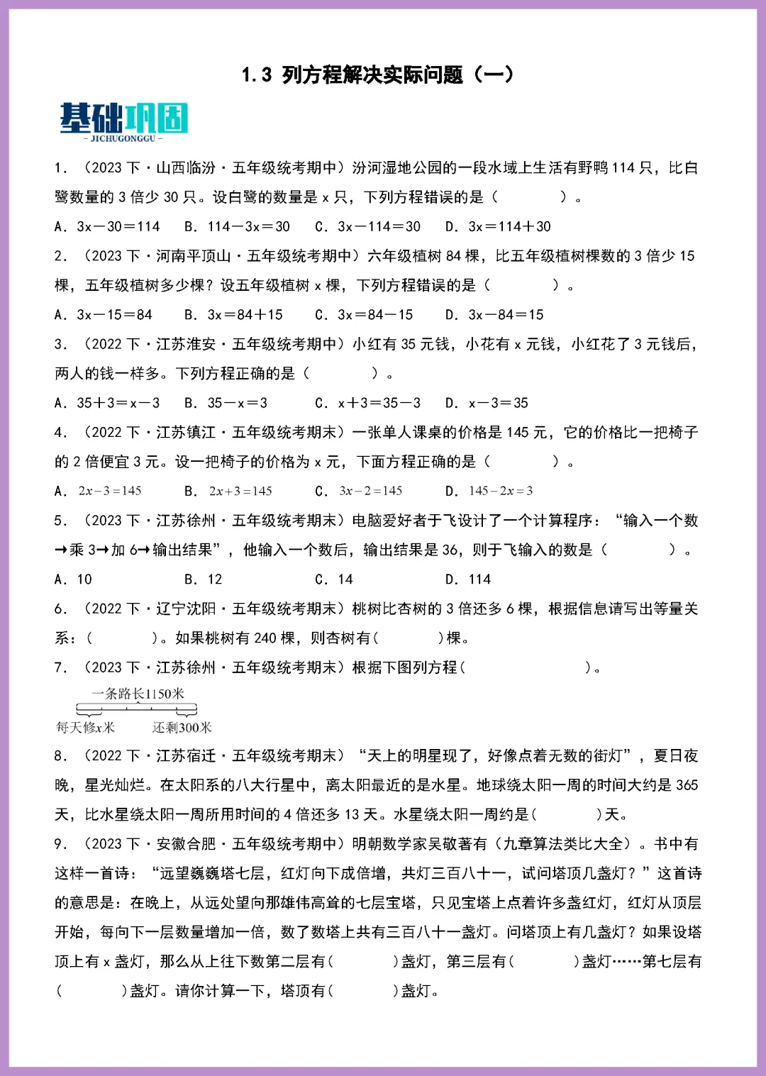 【免费下载】1.3 列方程解决实际问题(一) -(分层作业)【苏教】五下数学分层作业 | PDF完整高清电子版可打印