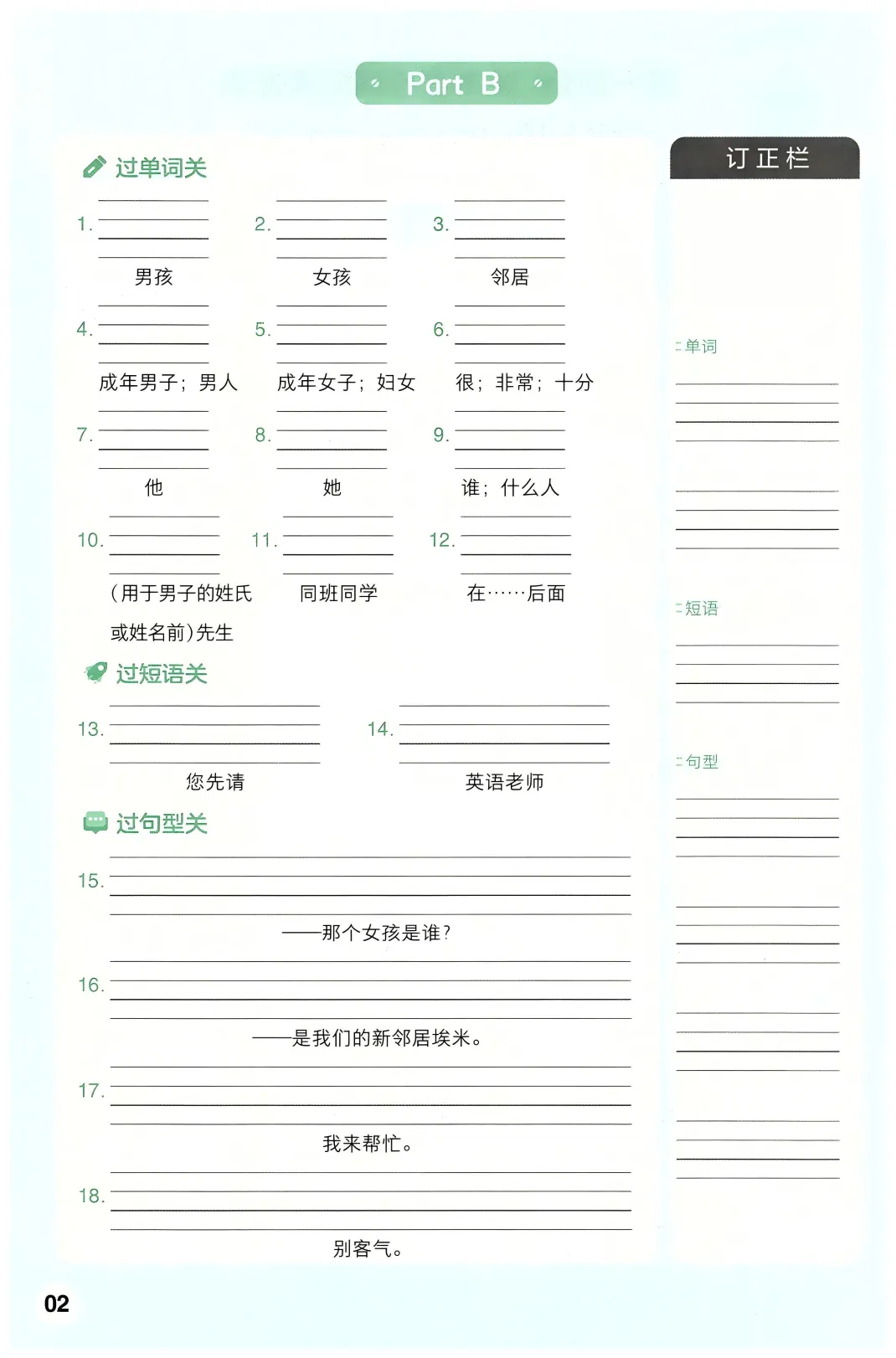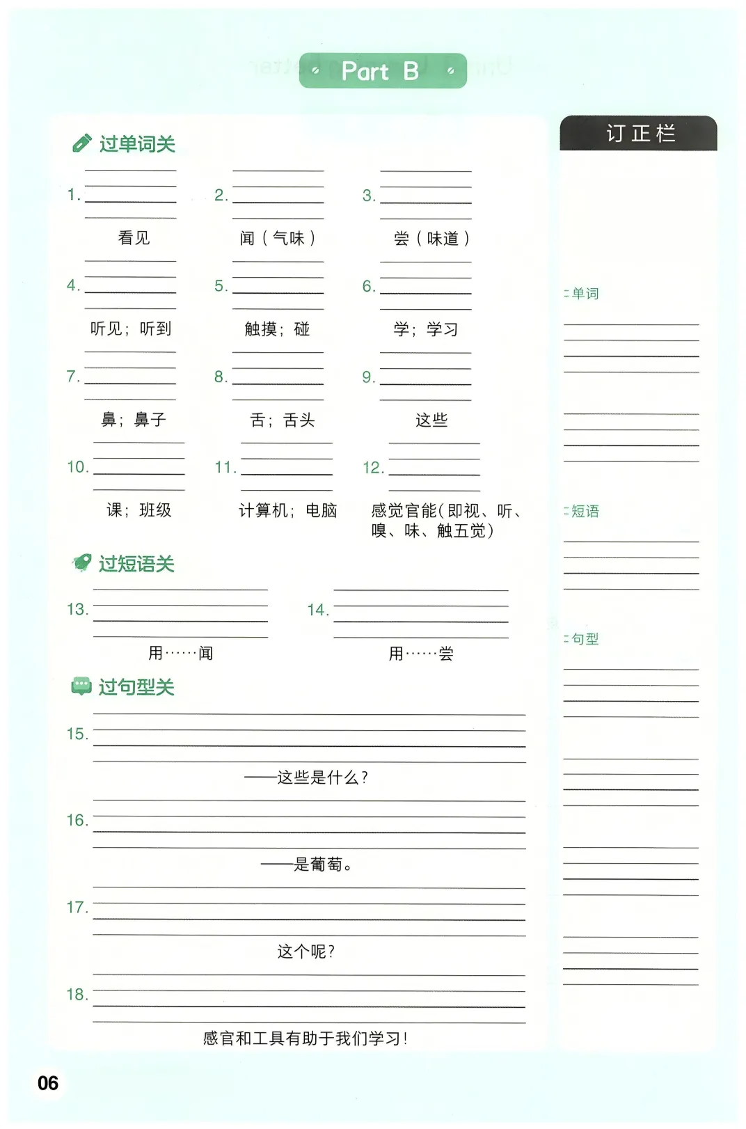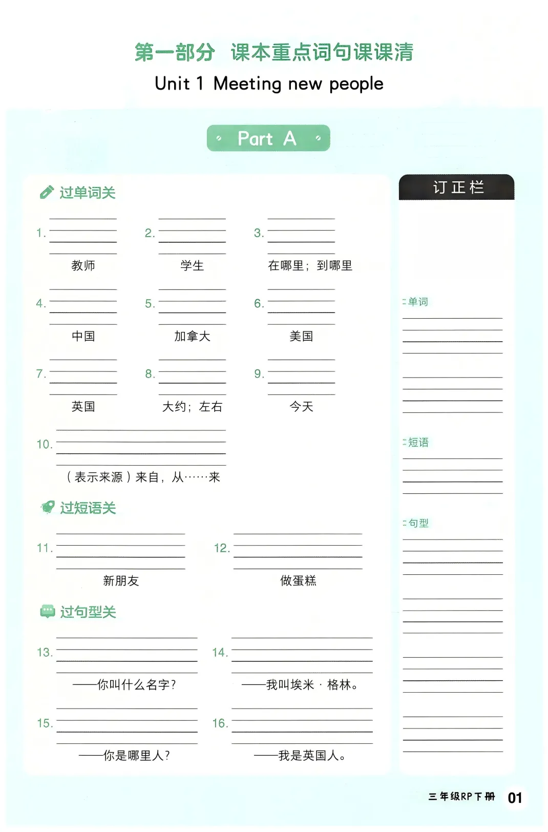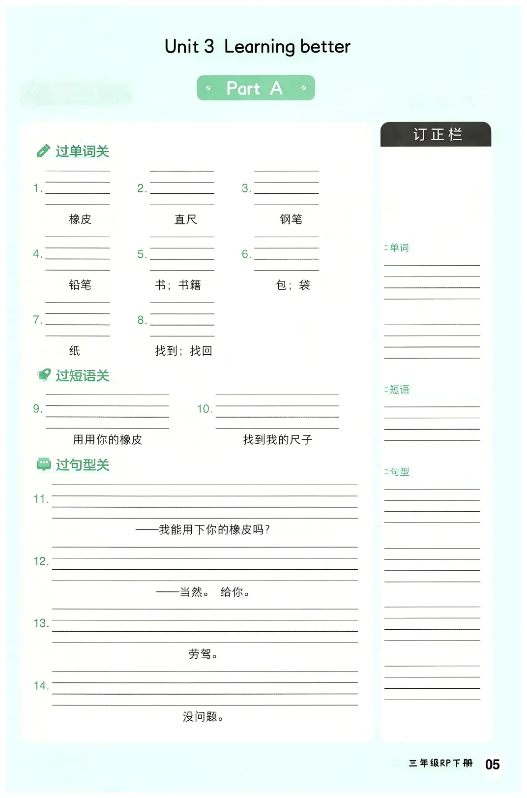 三年级(下)英语 全册词句默写单《人教版PEP》