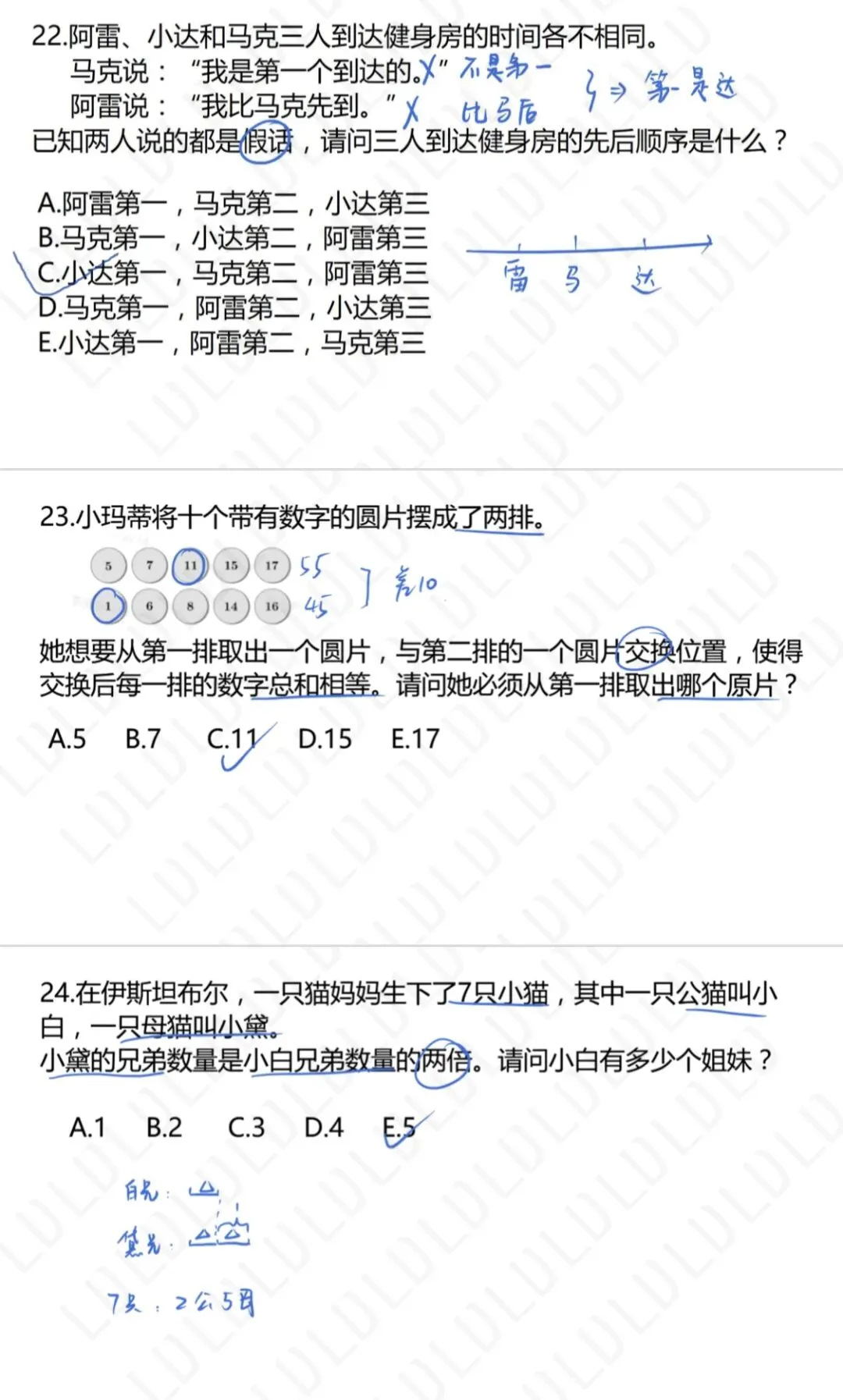 等级A、B: 共24道选择题,总分120分